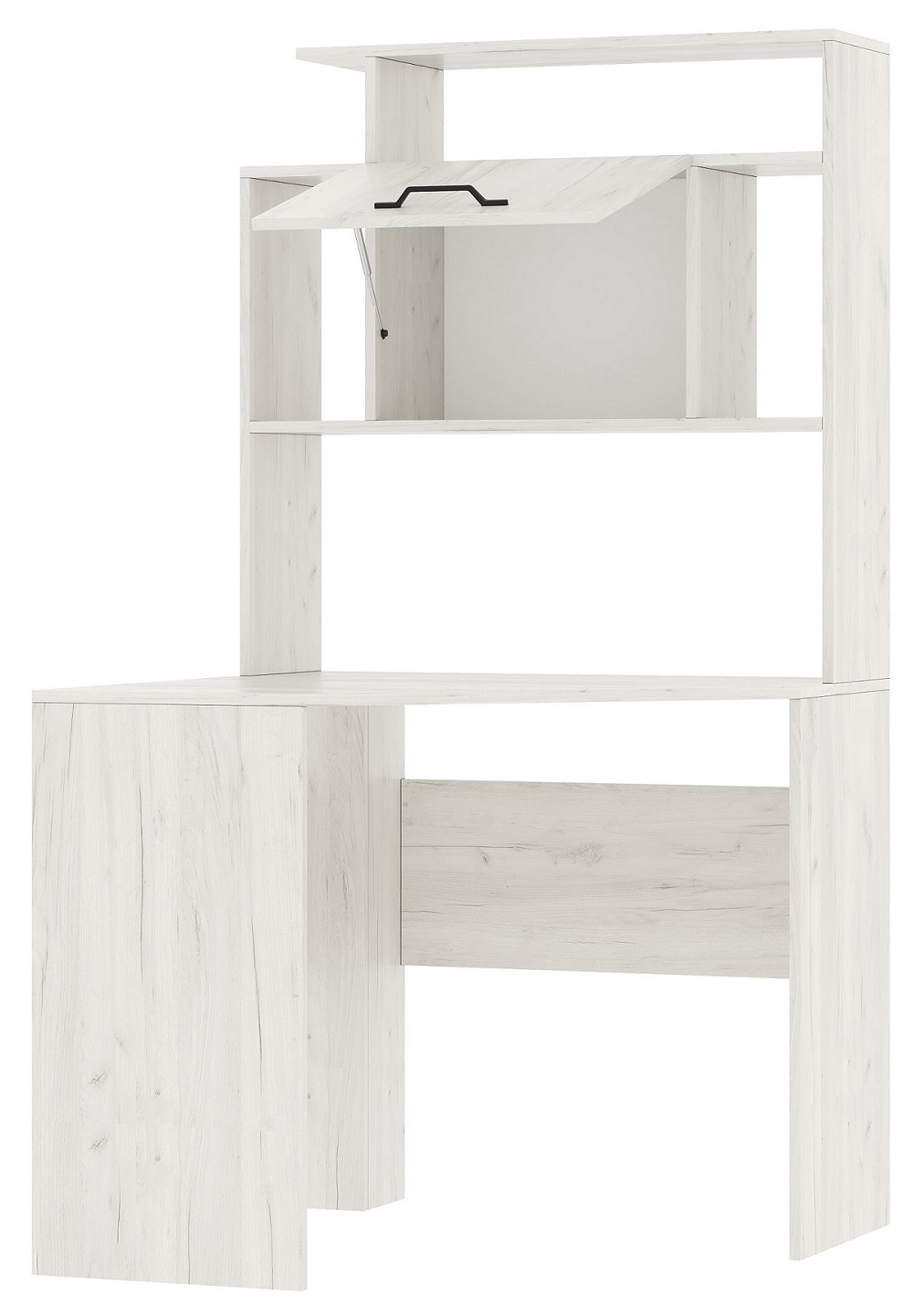 Письменно-компьютерный угловой стол ПКС-8 с надстройкой. Опционально стол можно доукомплектовать стеллажом или пеналом ПКС-8. Для удобства открывания и удержания фасада в открытом положении устанавливается газлифт. Cтолешница обработана кромкой толщиной 1 мм, что делает работу за столом более комфортной и удобной. Надстройка может устанавливаться как на левую, так и на правую сторону стола. Чёрная матовая металлическая ручка. Рабочая зона стола 890 х 334 х 890 мм.