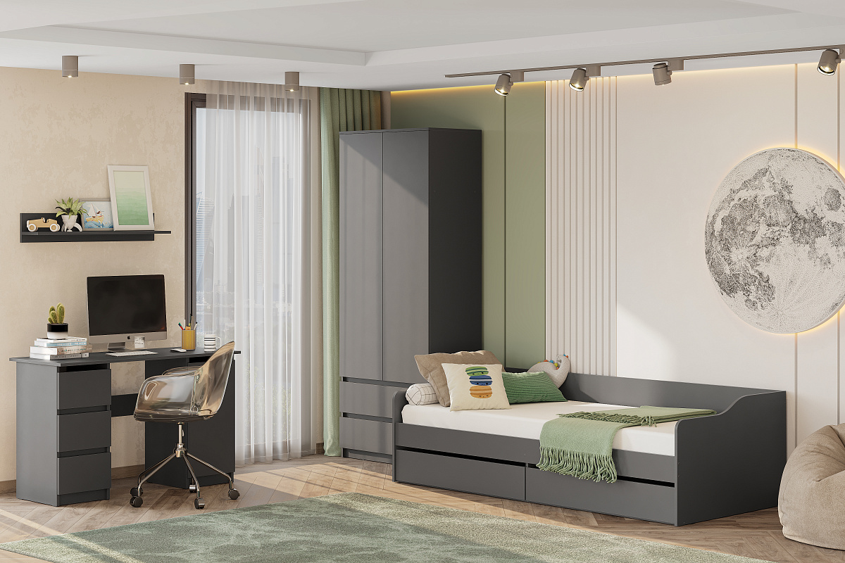 МС "Денвер" Комод 3 ящика двухстворчатый (Серия 2) Графит серый