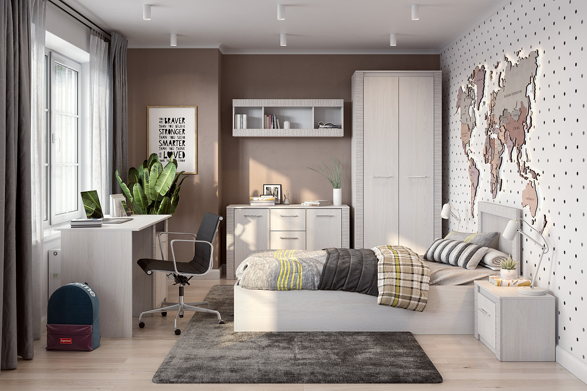 Комод (3 ящика двухстворчатый) Гамма 20 Серия №4 Ясень анкор/Сандал светлый