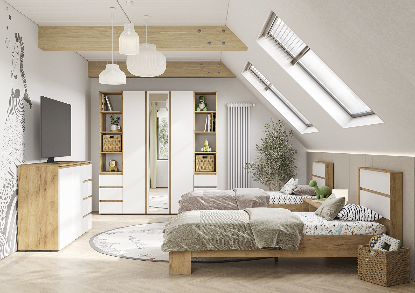 ХЕЛЕН ШК 05 Шкаф четырехстворчатый с ящиками БЕЛЫЙ/ДУБ КРАФТ ЗОЛОТО