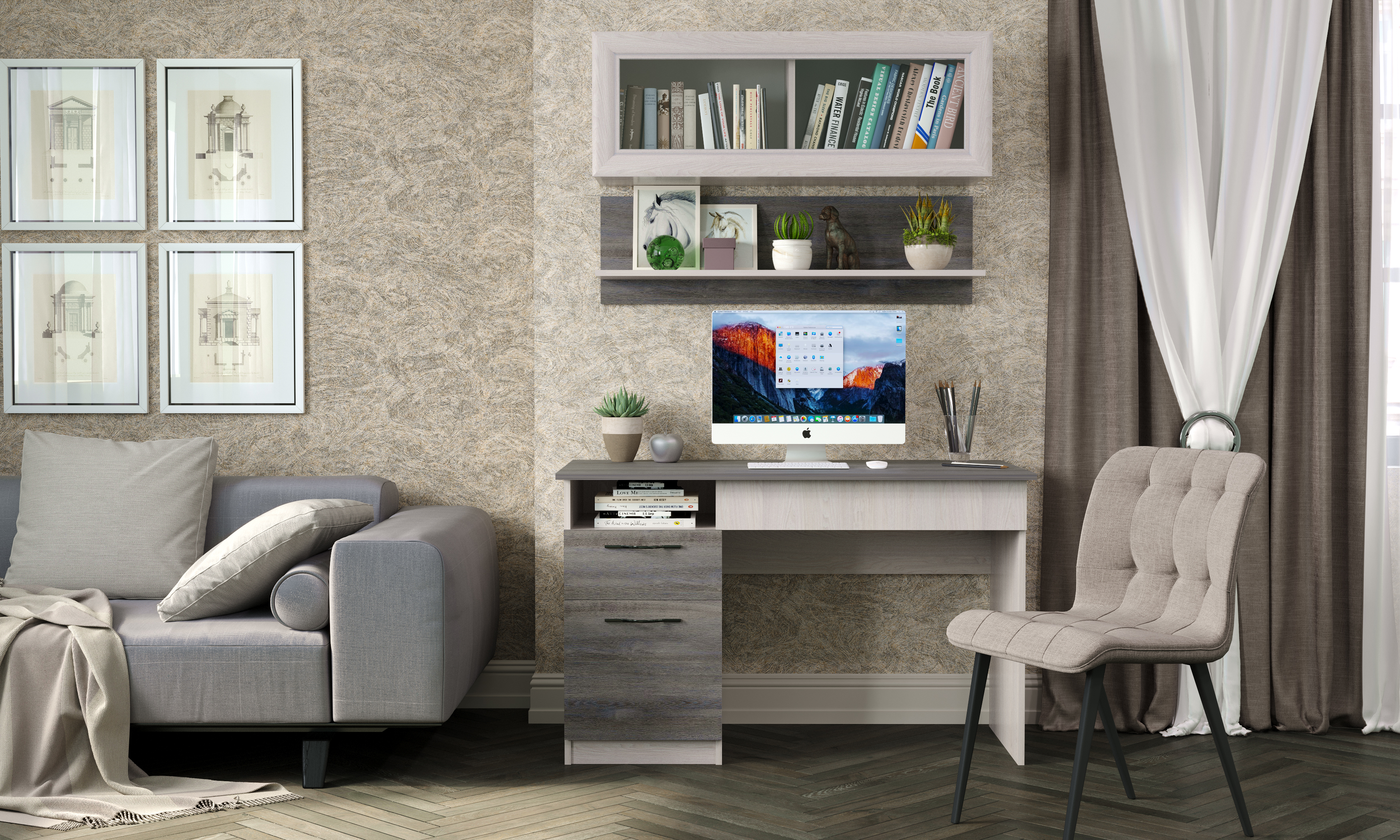 Модульная система «ОКТАВА» - мебель для серьёзных людей. Это единый гармоничный стиль Вашего дома, сочетание классических и современных трендов в дизайне, эстетика и функциональность одновременно. Многообразие и универсальность элементов позволяют компоновать мебель в индивидуальные композиции в соответствии с собственными потребностями и предпочтениями. Благородное сочетание двух цветовых гамм – «Ясень Анкор светлый» и «Дуб Клабхаус серый» – создадут роскошную и уютную обстановку в квартире или дом.