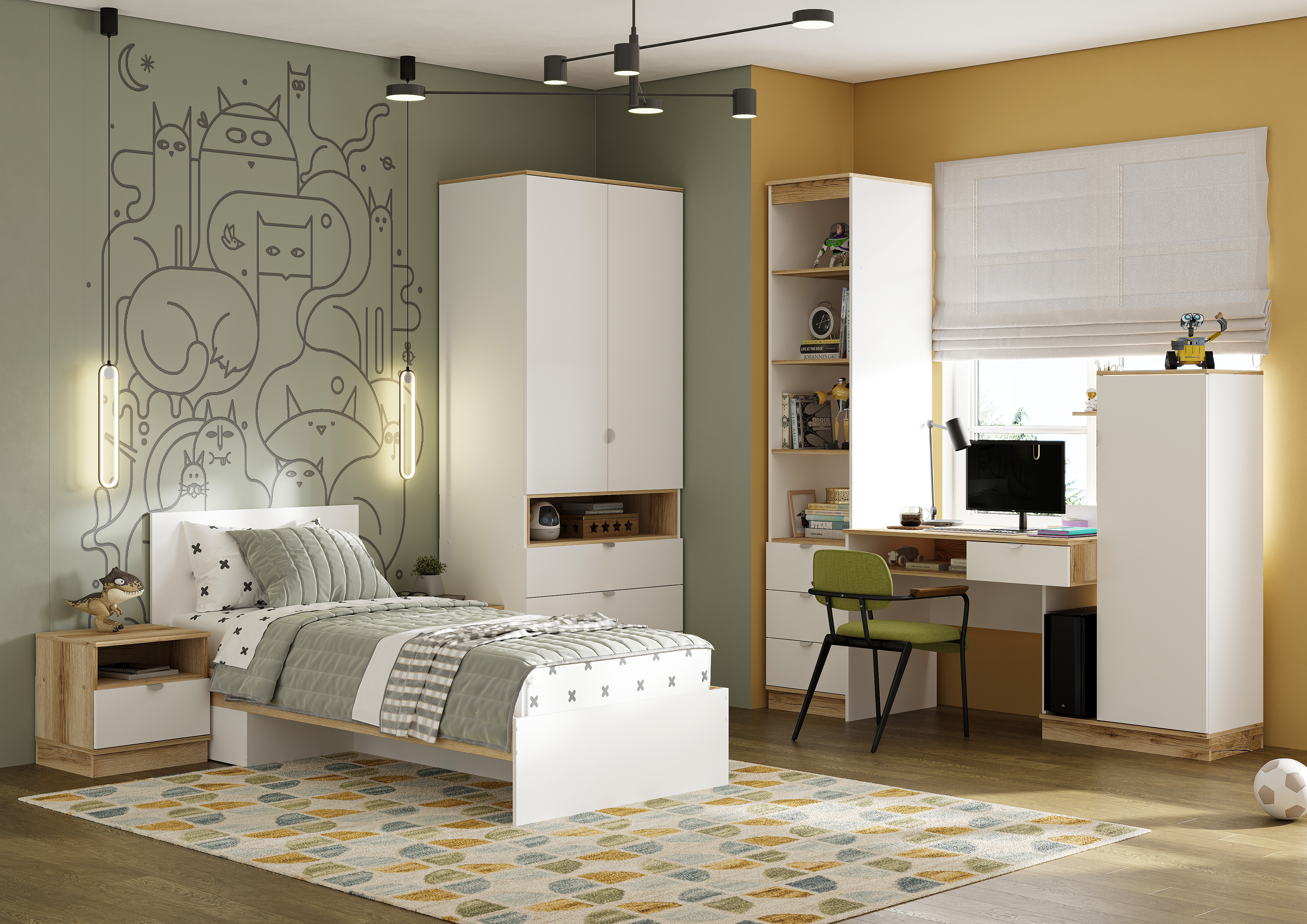 Шкаф 3х створчатый с зеркалом ЮККИ ШК 1Я 1350 БЕЛЫЙ/ДУБ ДЕЛАНО