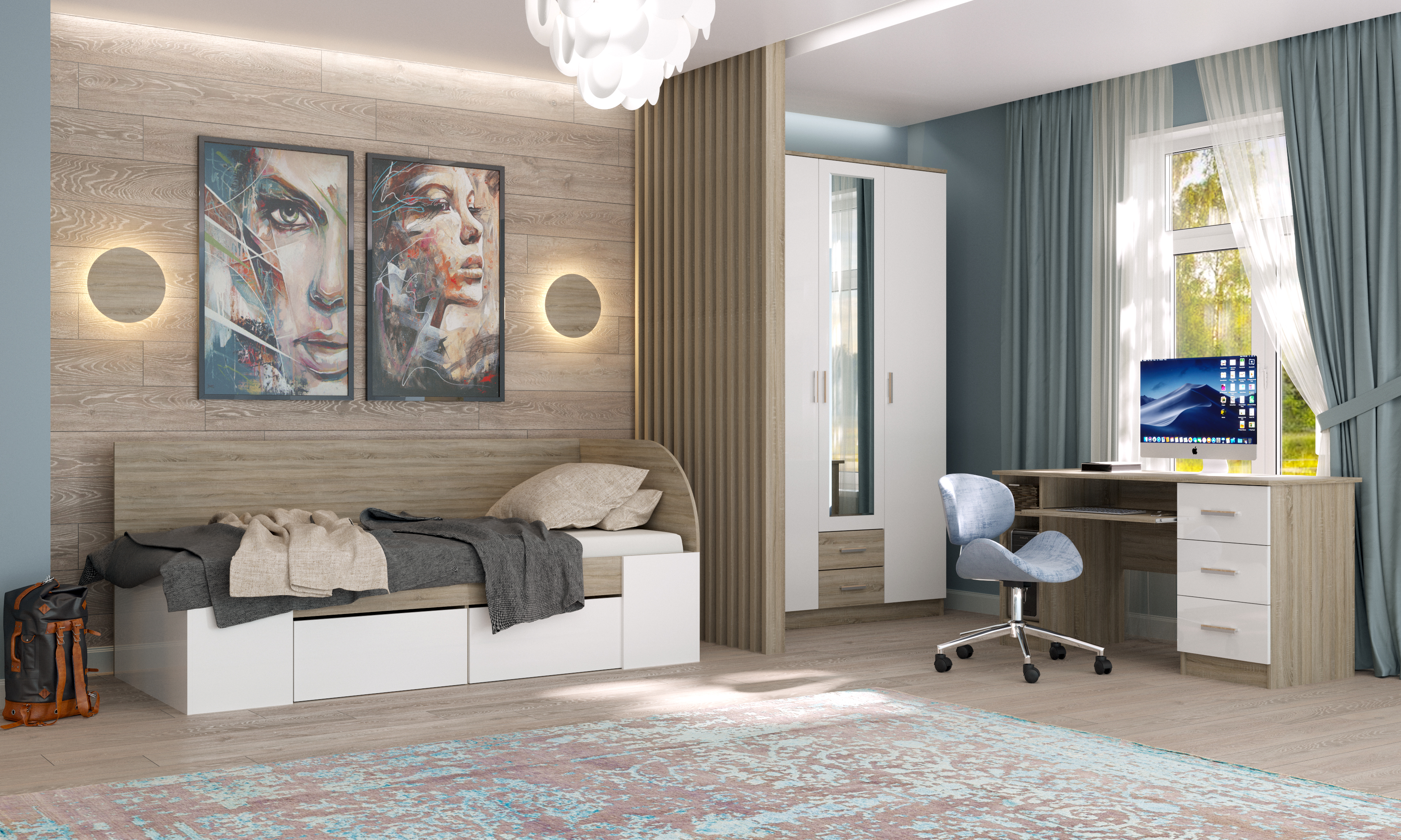 Коллекция мебели для спальни «БЕАТРИС» имеет выдержанный и лаконичный характер. Комбинация лёгкого древесного декора «Дуб Сонома» в сочетании с выразительным «Белым глянцем» создаст комфортный, уютный и современный интерьер важнейшего пространства – Вашей спальни. Для ценителей современного дизайна предлагается вариант спальни в цветовом решении «Дуб Крафт белый» к контрастным декором «Антрацит». Отличительная особенность этого исполнения – изящная чёрная металлическая ручка.
