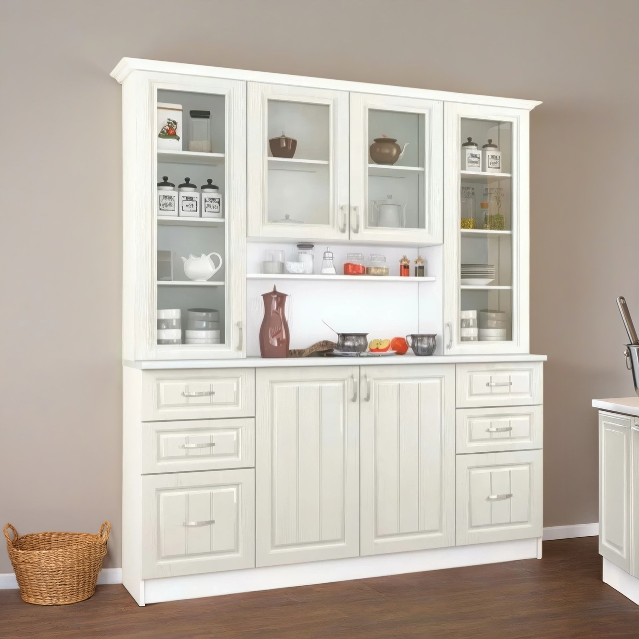 Элегантный буфет Прованс, созданный для истинных ценителей французской классики. Изящная мебель станет настоящим украшением вашей кухни или столовой, наполняя пространство атмосферой деревенской Франции. Буфеты Прованс — Широкий размерный ряд — Корпус из ЛДСП белого цвета с тиснением «Древесные поры», фасады из плиты МДФ, облицованные высококачественной матовой пленкой ПВХ толщиной 0,3 мм — Столешница и цоколь из ЛДСП белого цвета с тиснением «Древесные поры»