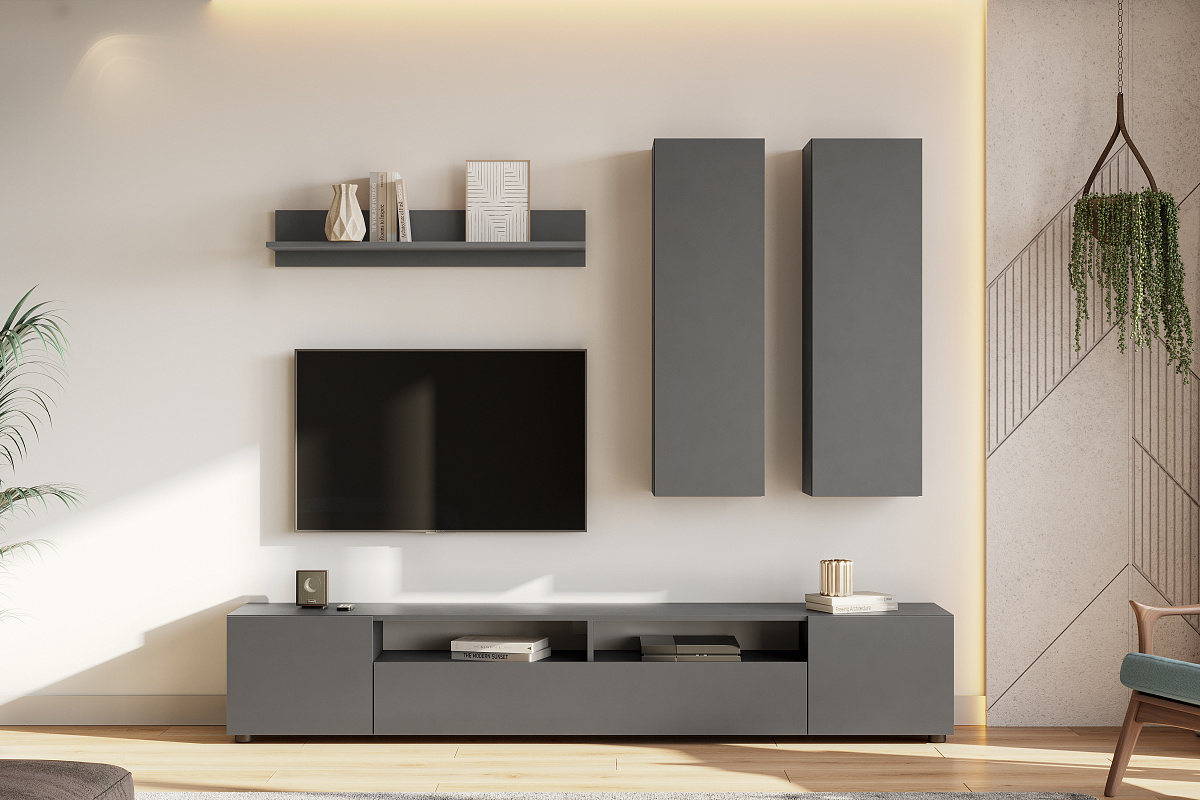 МС "Денвер" Комод 3 ящика двухстворчатый (Серия 2) Графит серый