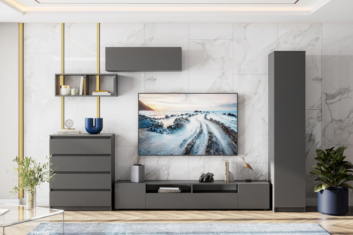 МС "Денвер" Комод 3 ящика двухстворчатый (Серия 2) Графит серый