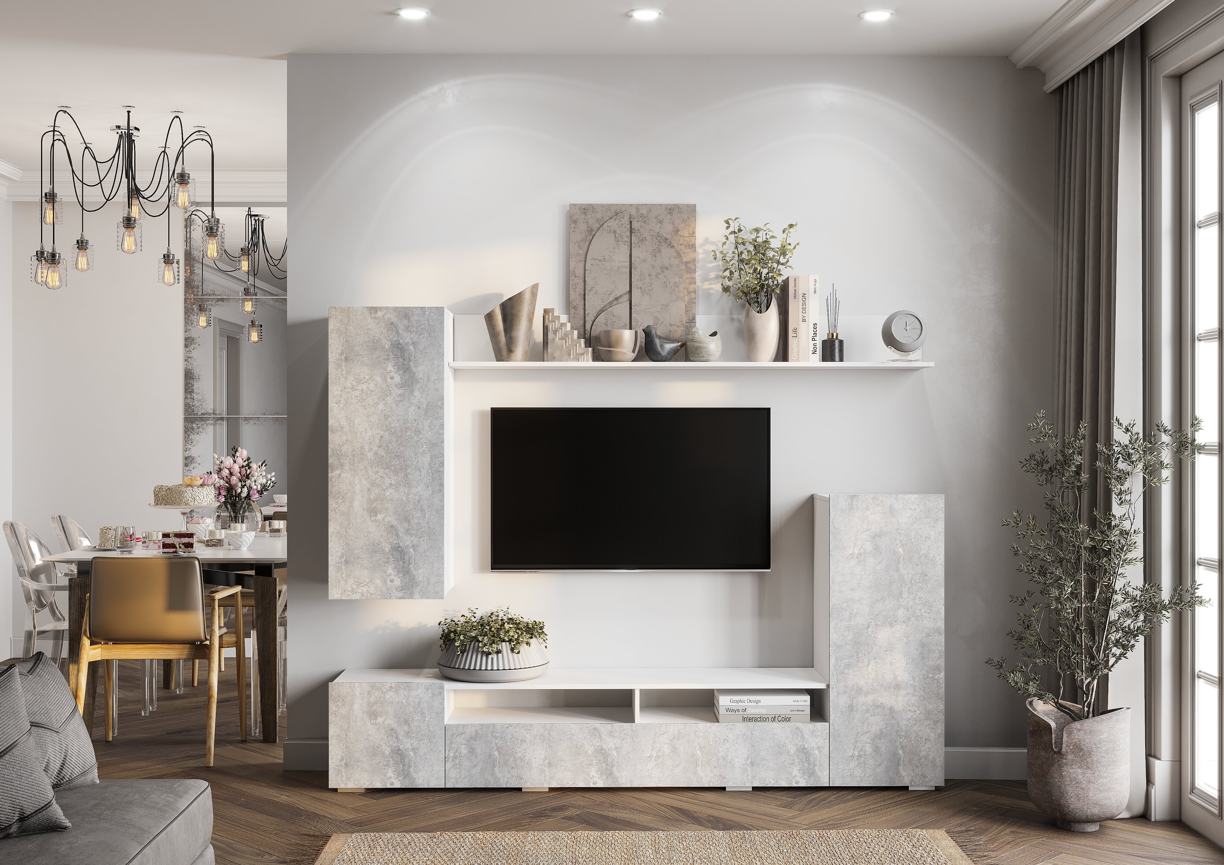 Гостиная «Диаманд» - идеальное решение для гостиной в современном стиле. Сдержанный дизайн позволит воплотить любую задумку в интерьере. Благодаря отсутствию лицевой фурнитуры гостиная смотрится более выразительно. Створки открываются путем захвата фасада рукой сверху или снизу. На верхней открытой полке вы сможете разместить свои любимые сувениры или фотографии.
