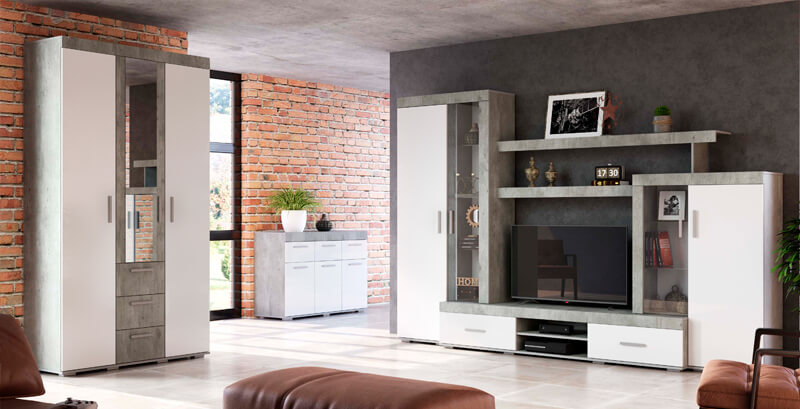 Гостиная "Инстайл" ЦС-02 бетон/белый