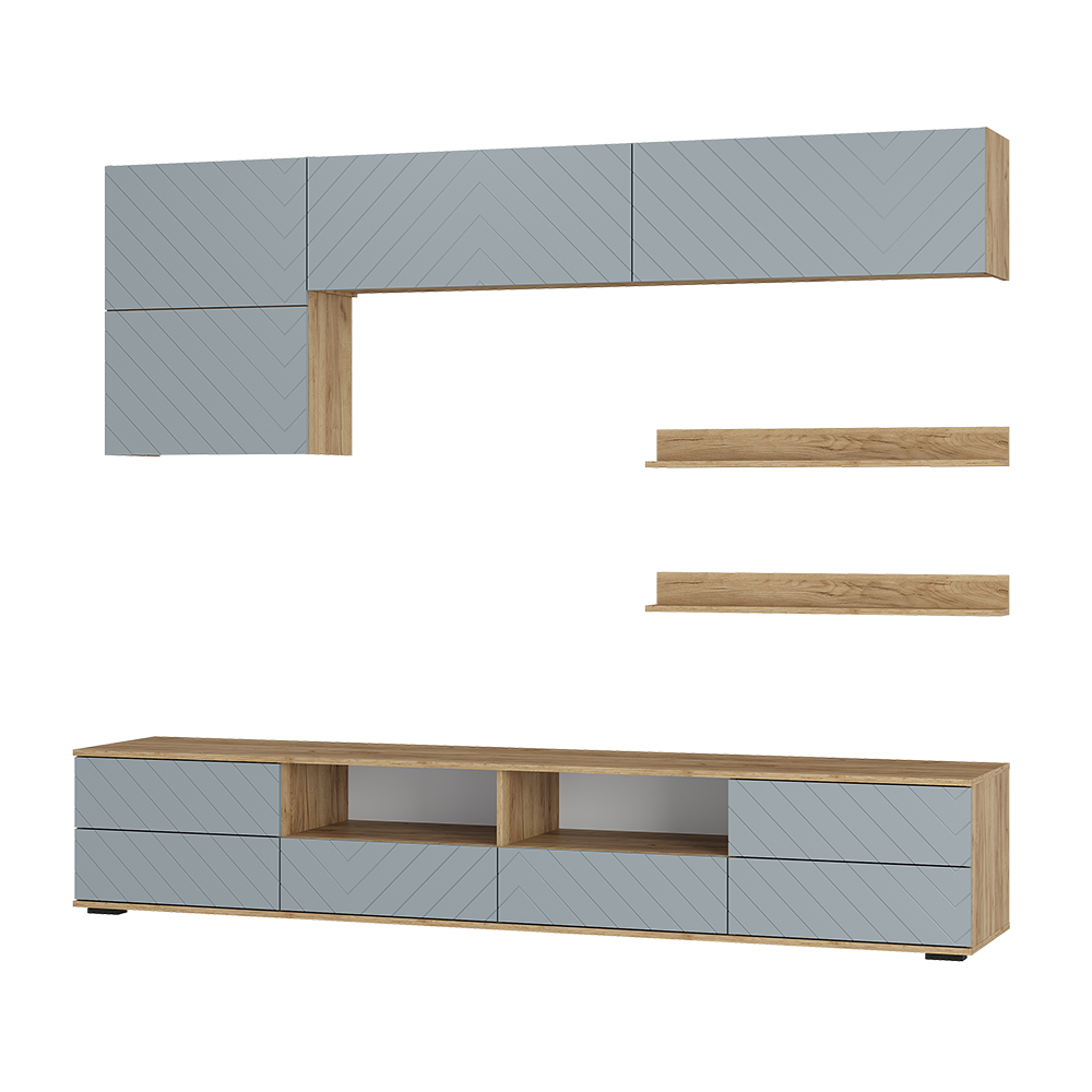 Гостиная «Камелия» - это комплексное решение для уютной гостиной. Разнообразие вместительных зон для хранения позволяет обустроить комфортную зону отдыха. Лаконичный дизайн и нежные оттенки фасадов «шарли пинк» и «шарли бриз» создают атмосферу расслабленности и гармонии. Фрезеровка на фасадах в виде геометрических узоров добавляет динамику в пространство и оживляет его.
