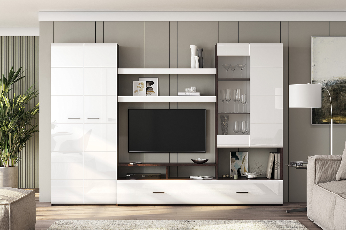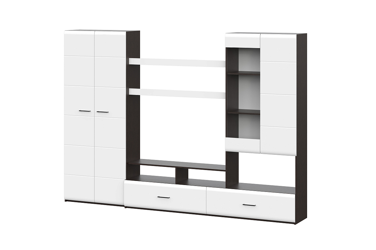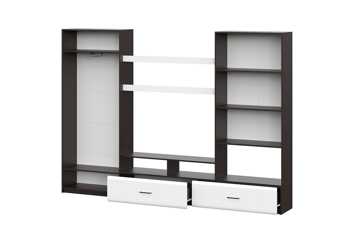 В качестве дополнительной опции Шкаф гостиной можно укомплектовать дополнительными полками. В комплект входят 3 полки из ЛДСП «Дуб Венге» размером 768х267 мм и 12 полкодержателей. Сверловка под полкодержатели предусмотрена комплектацией изделия.