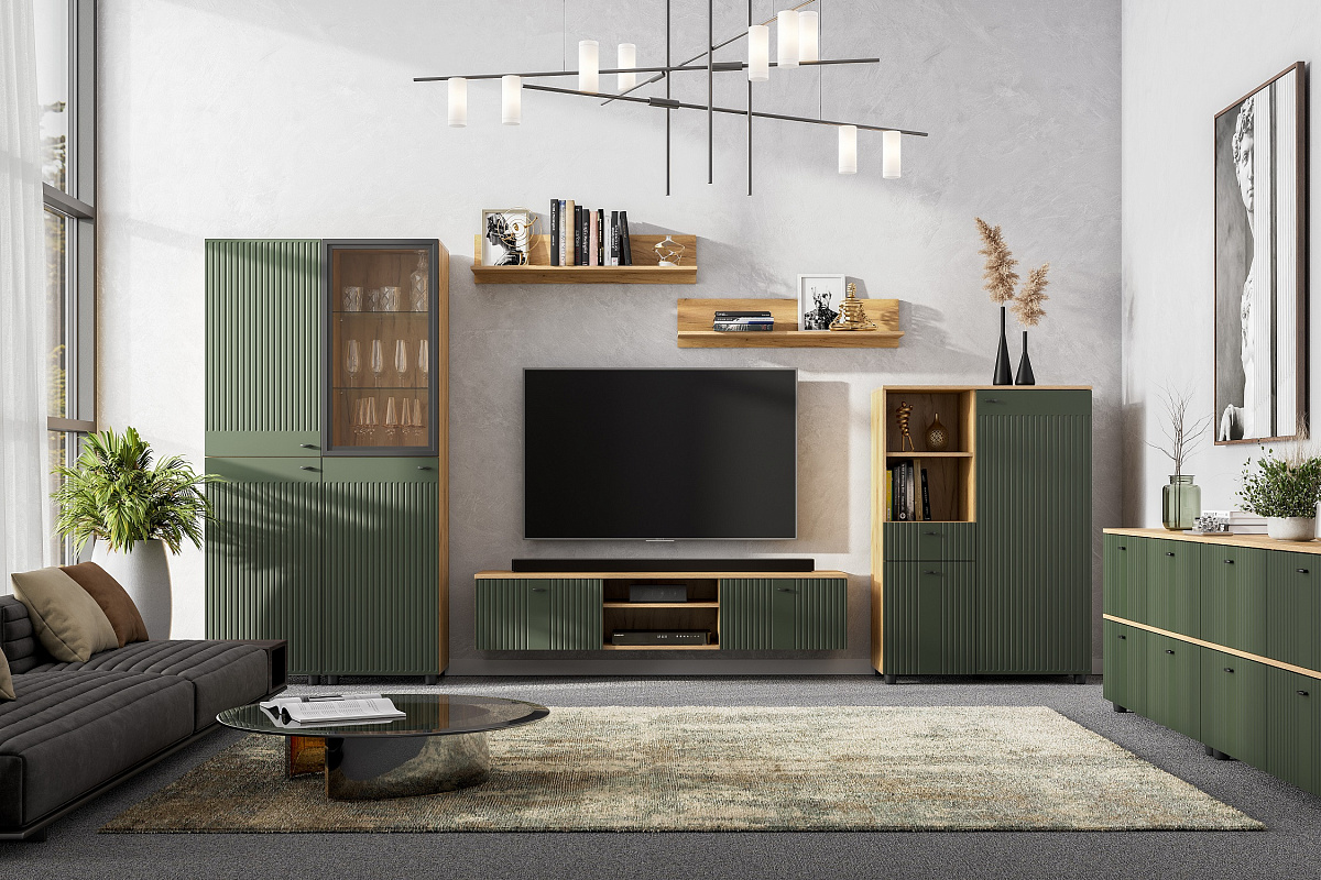 МС "Милан"Тумба телевидеоаппаратура со створками и нишей Дуб Золотой/Олива Софт
