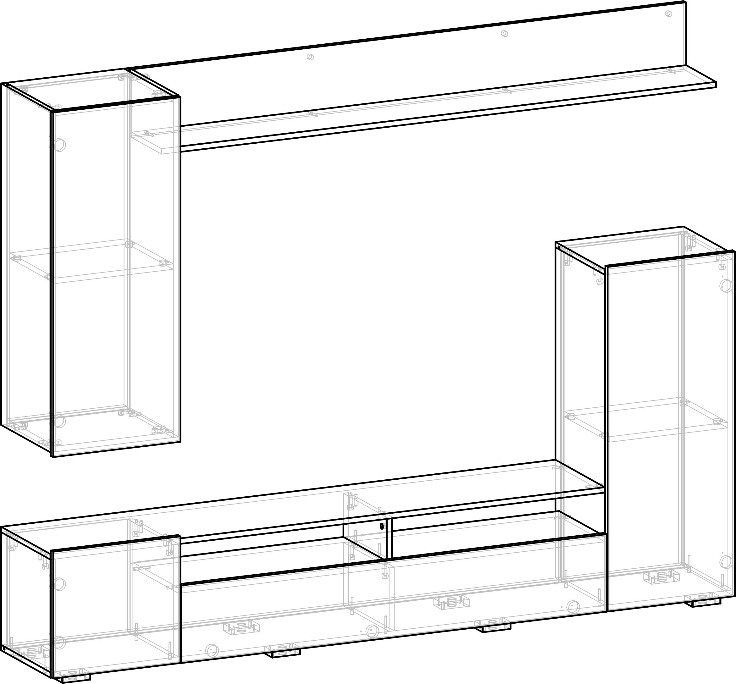 Гостиная «Мия» состоит из 2-х секций. Напольная тумба с пеналом и навесная антресоль с полкой. Антресоль крепится к стене через навесные элементы.