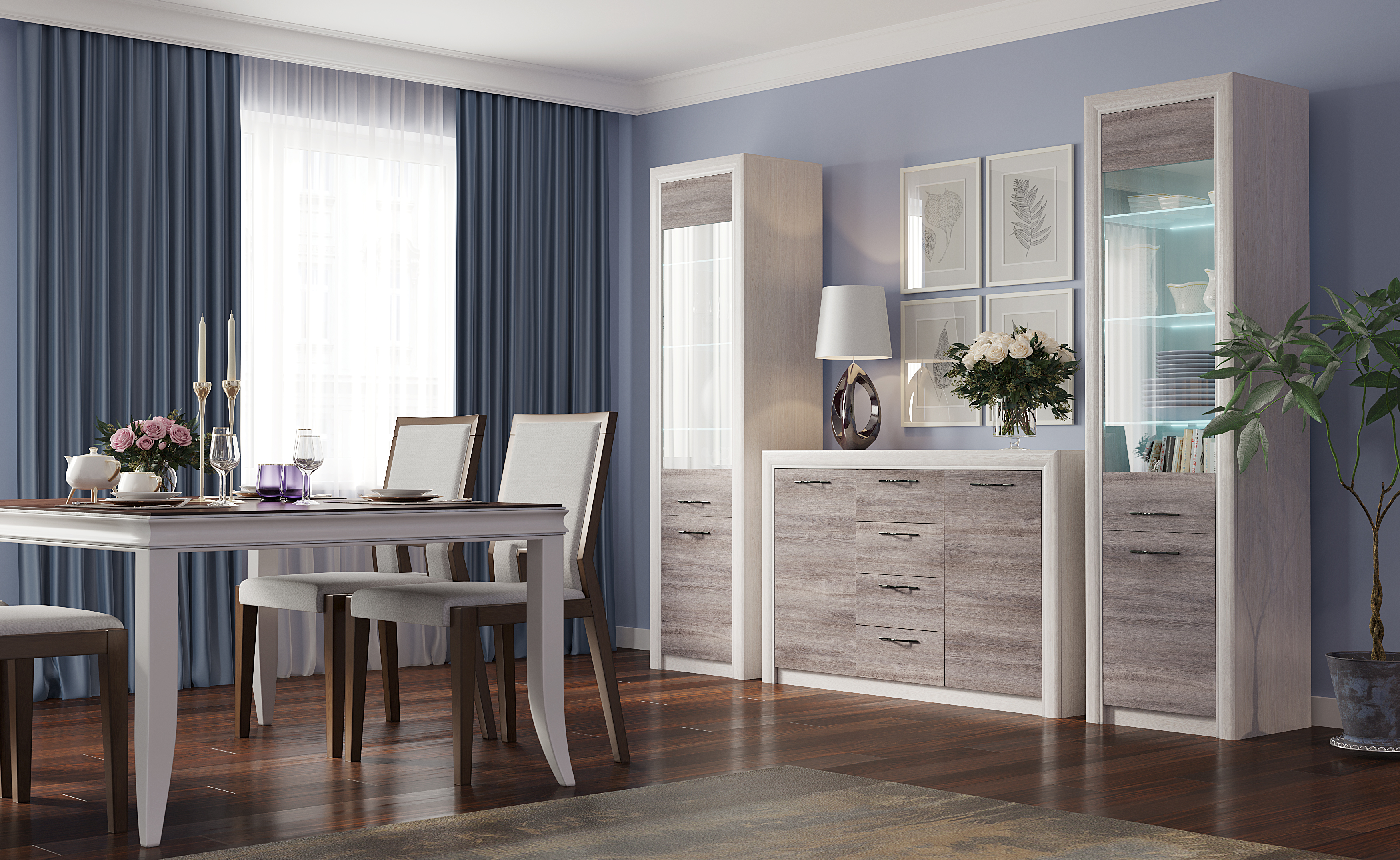 Модульная система «ОКТАВА» - мебель для серьёзных людей. Это единый гармоничный стиль Вашего дома, сочетание классических и современных трендов в дизайне, эстетика и функциональность одновременно. Многообразие и универсальность элементов позволяют компоновать мебель в индивидуальные композиции в соответствии с собственными потребностями и предпочтениями. Благородное сочетание двух цветовых гамм – «Ясень Анкор светлый» и «Дуб Клабхаус серый» – создадут роскошную и уютную обстановку в квартире или дом.