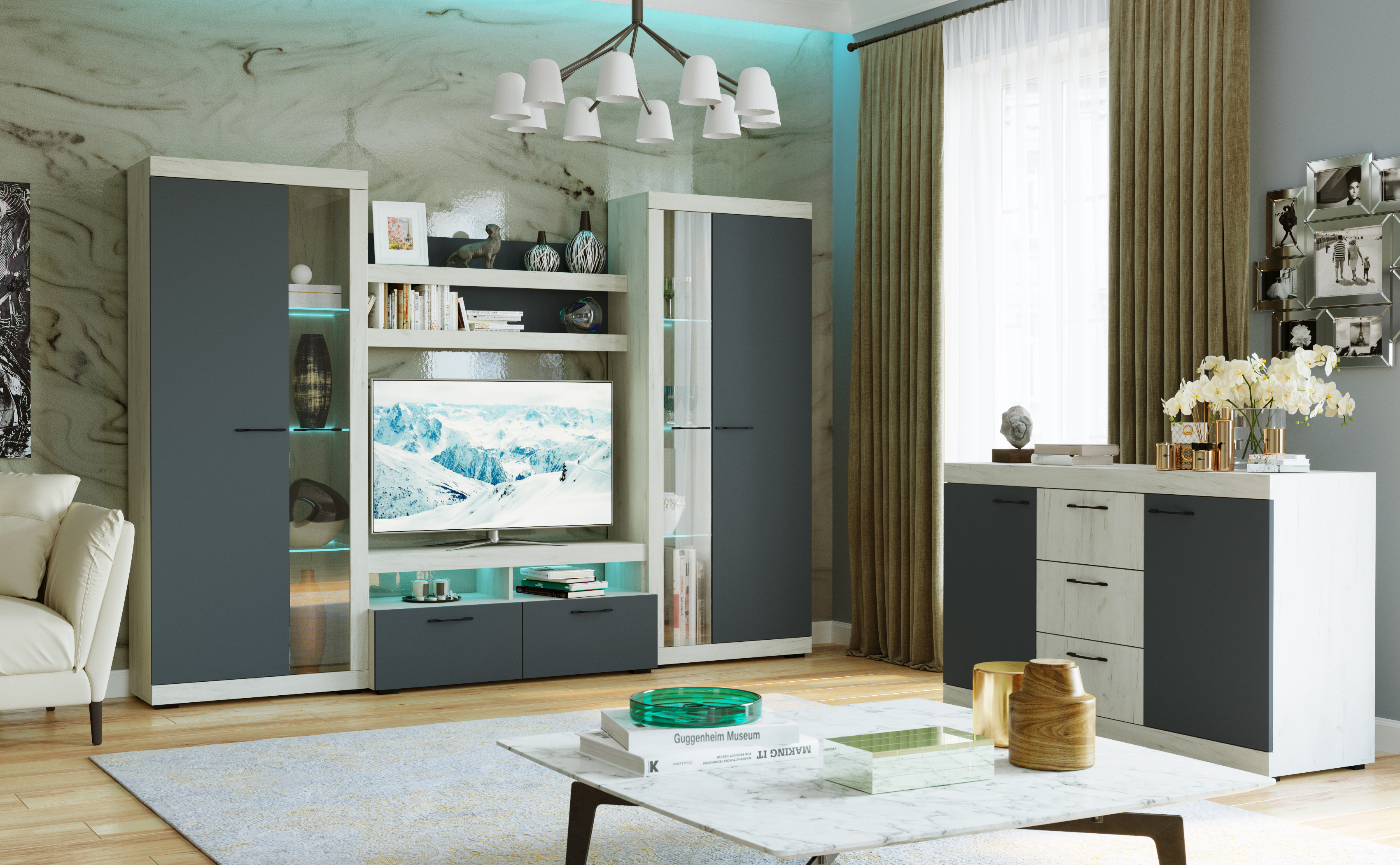 Варианты цветового решения: «Дуб Крафт белый», «Антрацит», «Дуб Сонома», «Белый глянец», «Дуб Сакраменто».