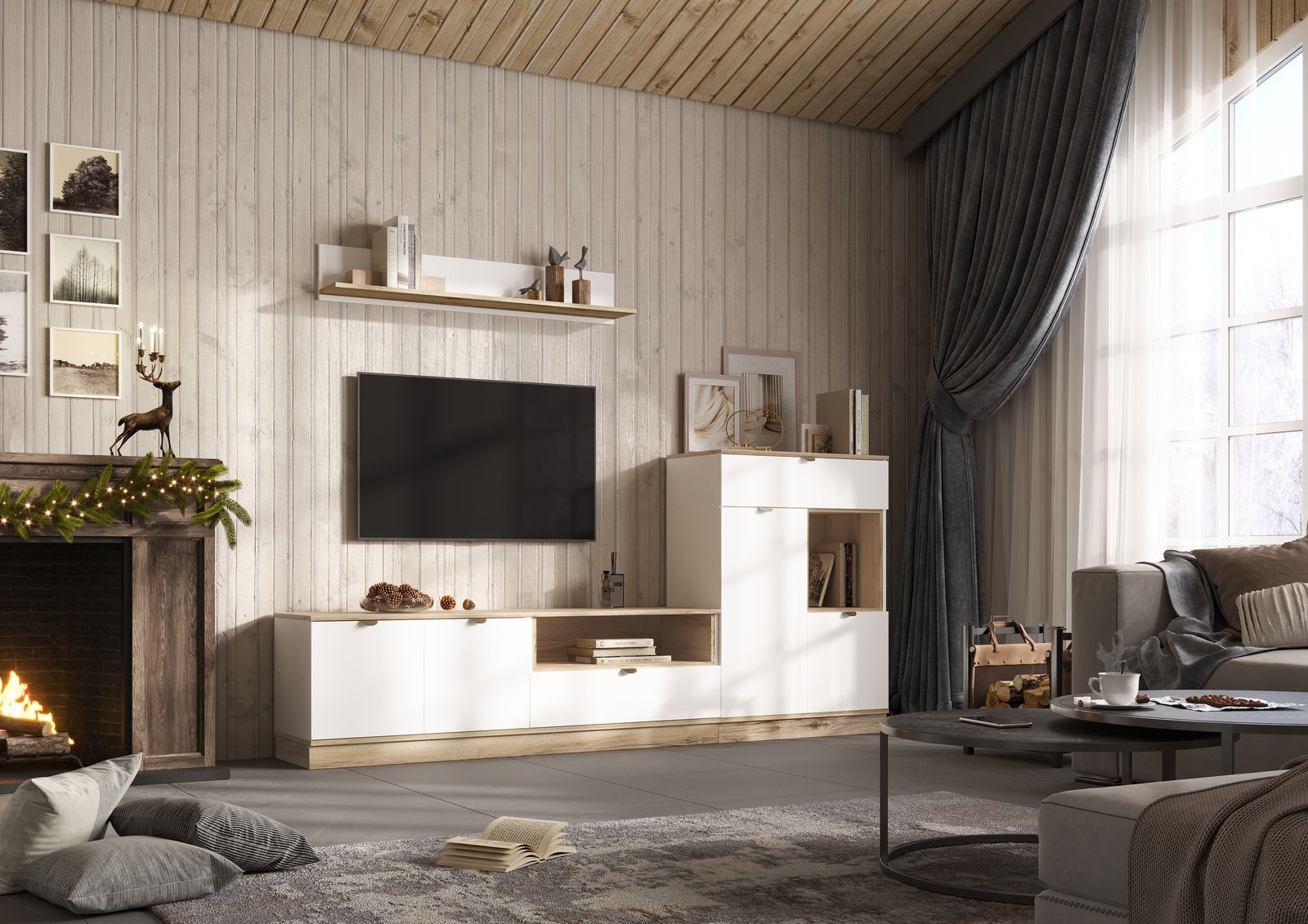 Шкаф 3х створчатый с зеркалом ЮККИ ШК 1Я 1350 БЕЛЫЙ/ДУБ ДЕЛАНО