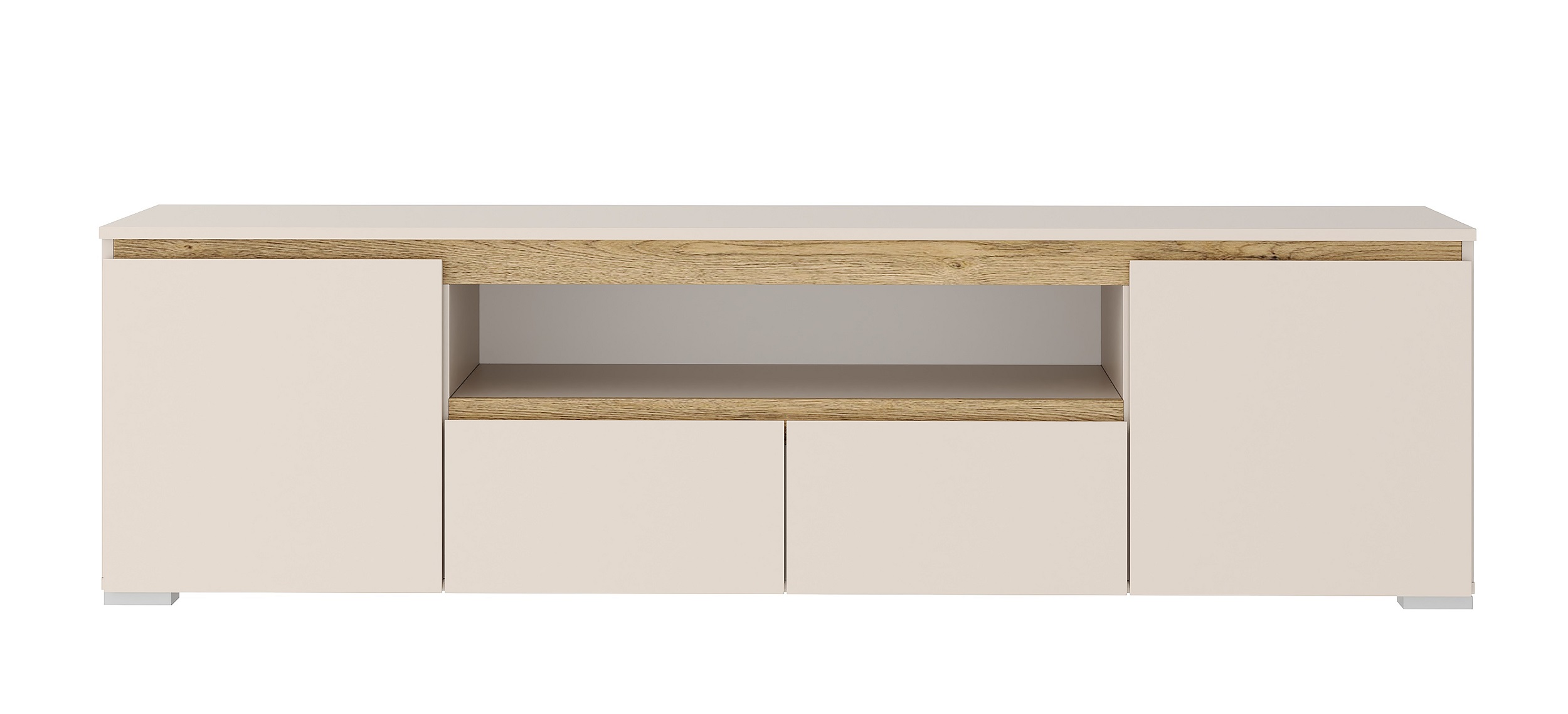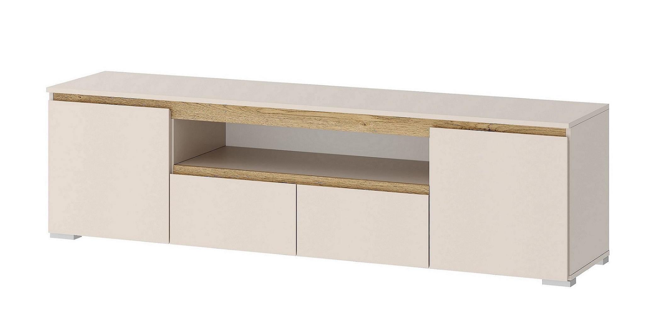 Тумба 1800 2С2Я «ГРЕТТА» 2-створчатая с 2-мя ящиками на направляющих полного выдвижения. Применение интегрированной ручки на фасадах делает модель стильной и безопасной – дверцы и ящик открываются за профилированные выступы. Фасады обработаны кромкой 1 мм. Серебристая регулируемая ножка-опора.