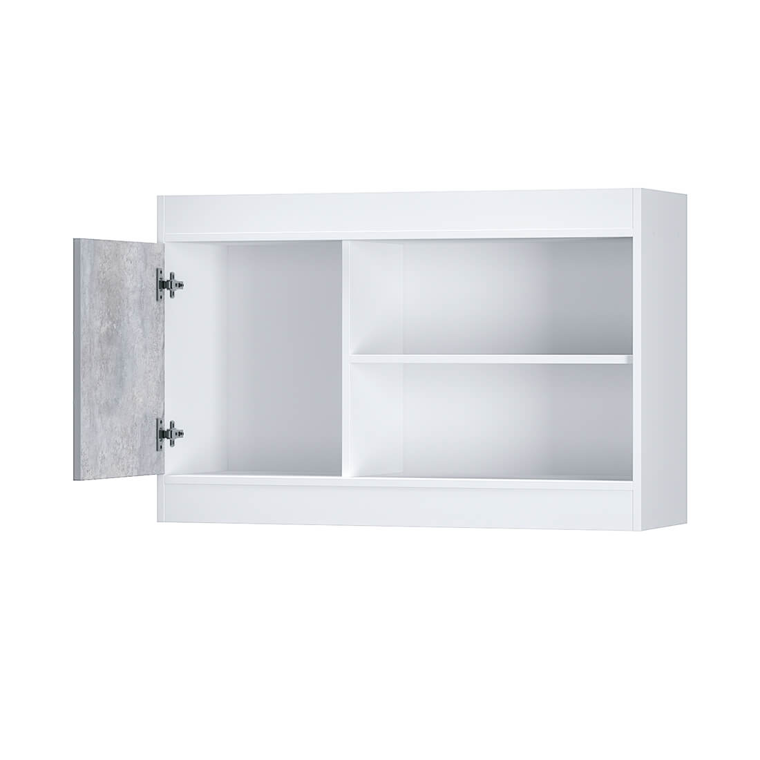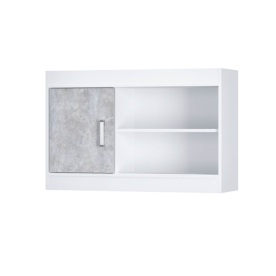 Навесная полка «Паскаль» из одноименной коллекции мебели позволит организовать дополнительное местохранение. Модель выполнена из ЛДСП в цветах «белый» и «цемент светлый», состоит из двух открытых ниш и распашной створки. С помощью полки можно оформить кабинет или рабочее пространство для учебы.