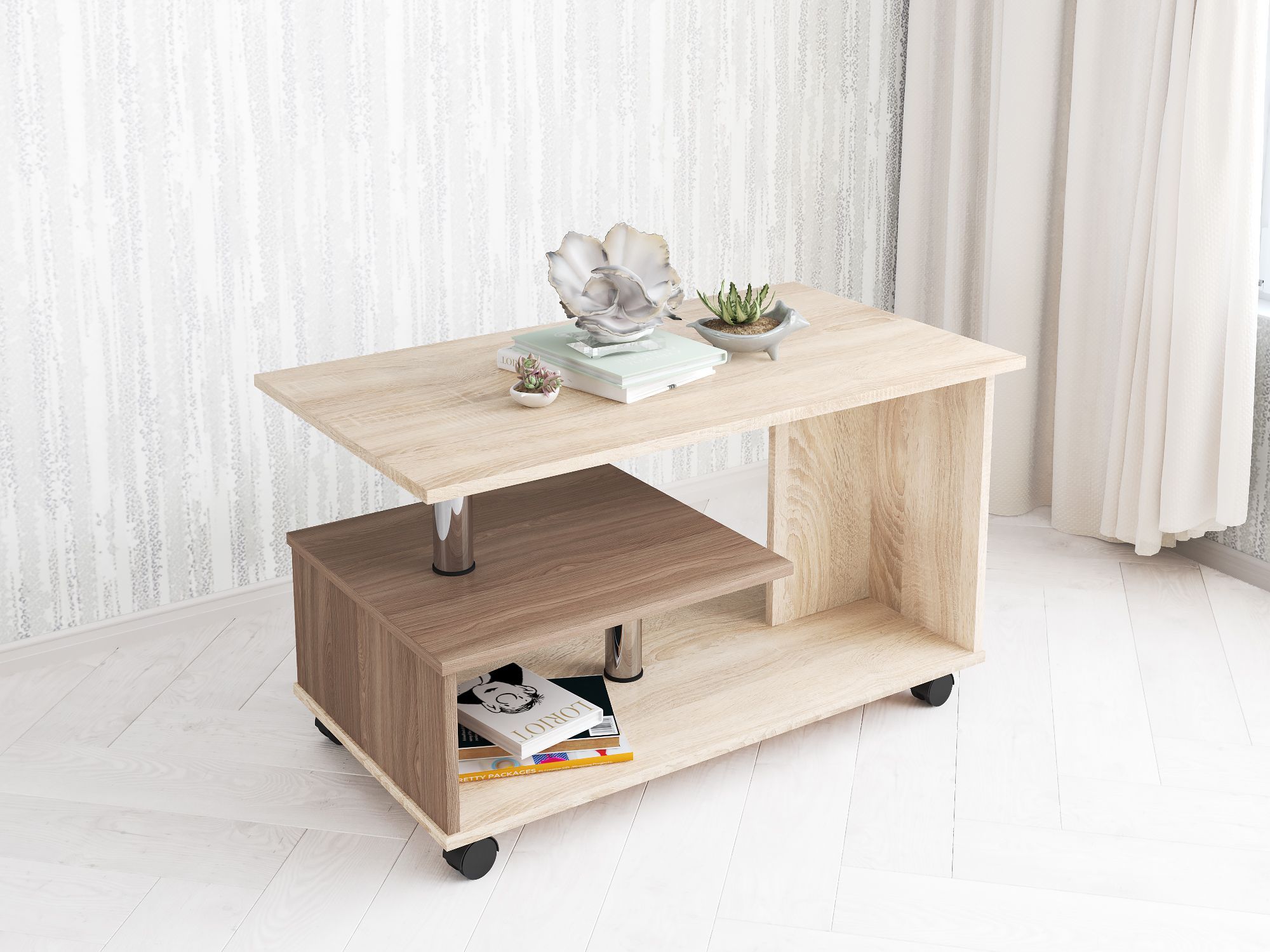 Журнальный стол Консул-5 — Классические цветовые решения — Стол на колесных опорах — Использовать изделие строго по назначению, не становиться и не садиться на него Материал:ЛДСП.