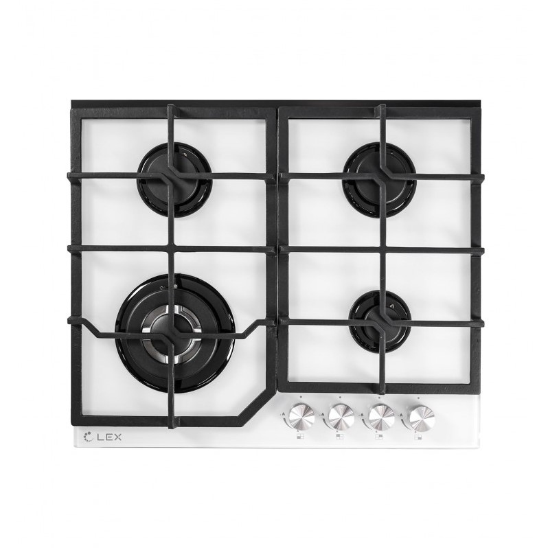 Модель LEX GVG 640-1 WH — это газовая варочная поверхность с 4 конфорками различного диаметра и мощности, чугунными решетками и рабочей поверхностью из прочного закаленного стекла. Поверхность из ударопрочного, закаленного стекла — это не только стильно, но и практично. Закаленное стекло не впитывает загрязнения, его легко мыть и с годами ваша поверхность не потеряет свою привлекательность. Надежные чугунные решетки не позволят вашей посуде скользить по своей поверхности за счет шероховатой структуры и прослужат вам долгие годы (чугунные решетки не подвержены деформации при воздействии высоких температур, в отличие от стальных решеток). 4 конфорки различной мощности позволят вам использовать для приготовления посуду различного диаметра, а форма решетки подходит даже для приготовления кофе в турке. Поверхность также оснащена WOK-горелкой. Это горелка увеличенного размера и мощности, снабженная двумя рядами пламени, для более быстрого, мощного и равномерного распределения температуры, что, в свою очередь, подходит для приготовления разнообразных блюд, в том числе и национальных блюд разных стран. За счет равномерного распределения температуры данная конфорка идеально подойдет для томления. Электроподжиг, интегрированный в каждую ручку, позволит вам включить подачу газа и поджечь конфорку движением одной руки. Каждая конфорка снабжена системой газ-контроля, что делает данную поверхность не только стильной и практичной, но еще и максимально безопасной. При затухании огня система газ-контроля автоматически прекратит подачу газа.