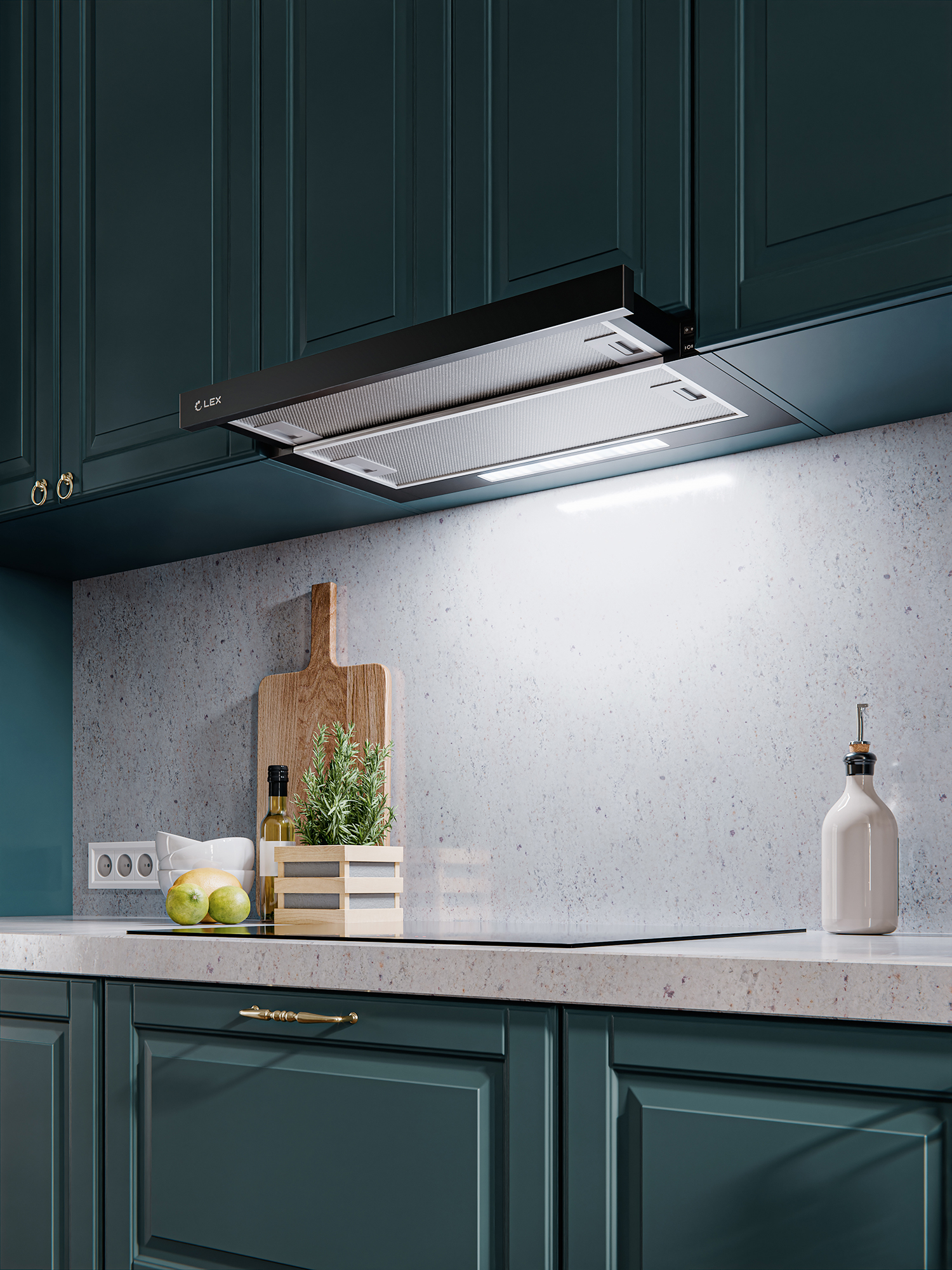 Встраиваемая вытяжка Hermes 600 с инверторным двигателем легко и без лишнего шума справится даже с интенсивным запахом и дымом в большой кухне. Модель имеет две скорости работы, которые удобно переключать на клавишной панели управления. Комфортная подсветка зоны над плитой позволит готовить без дополнительного освещения, что особенно удобно для квартир с европланировкой. Вытяжка может работать в режиме рециркуляции, поэтому ее можно использовать и в кухне без вентиляционного выхода. Телескопическая конструкция дает возможность сэкономить место без потери производительности. Модель встраивается в кухонный шкафчик, видимой остается только узкая передняя панель, поэтому вытяжку можно установить в любую кухню, независимо от стиля интерьера.