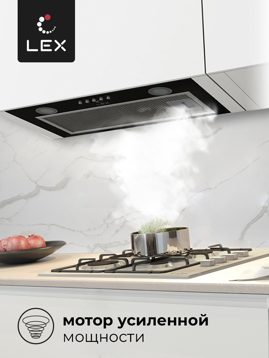 GS BLOC P 600 BLACK – полновстраиваемая вытяжка практически незаметна в интерьере, благодаря чему отлично подходит, как для интерьера в классическом стиле, так и для современного минималистичного пространства. Устройство чёрного цвета имеет интуитивно понятное кнопочное управление. В передней части вытяжки расположена экономичная LED подсветка. Подключение GS BLOC P 600 BLACK возможно, как на отвод воздуха в вентиляцию, так и на режим рециркуляции воздуха. Мотор повышенной мощности обеспечивает уникальные для своего класса показатели производительности.