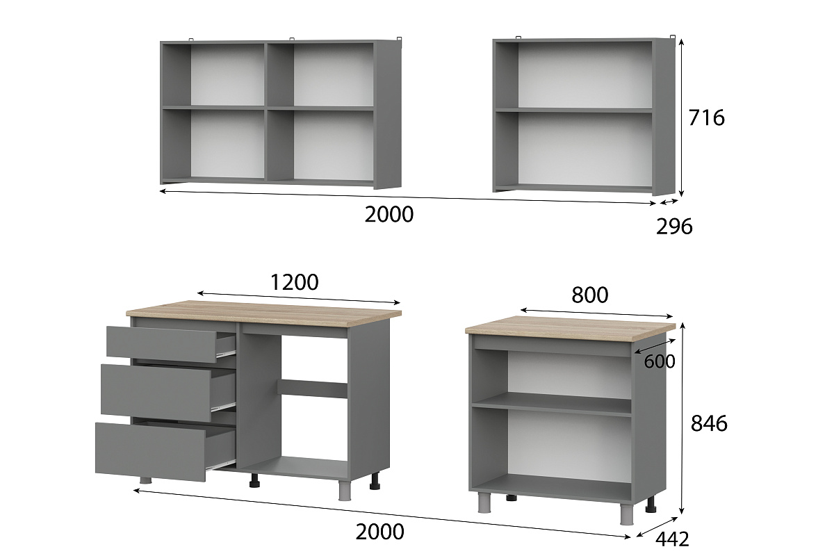 В комплекте столешница: 1200 мм и 800 мм