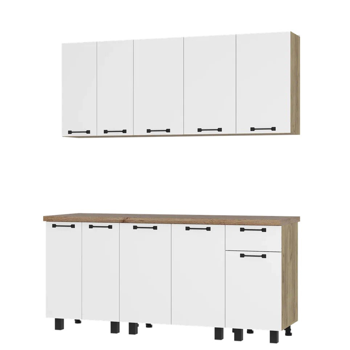 Размеры низ: ширина - 1800 мм, высота - 858 мм, глубина - 595 мм. Размеры верх: ширина - 1800 мм, высота - 720 мм, глубина - 304 мм.