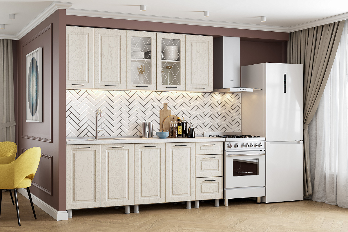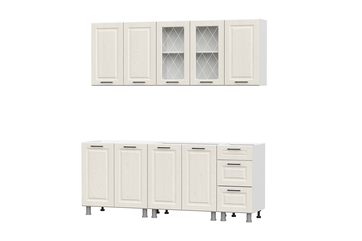 Столешница, стеновая панель, а также дополнительное оборудование (мойка, смеситель, бытовая техника) приобретаются отдельно. Ручки в комплекте.