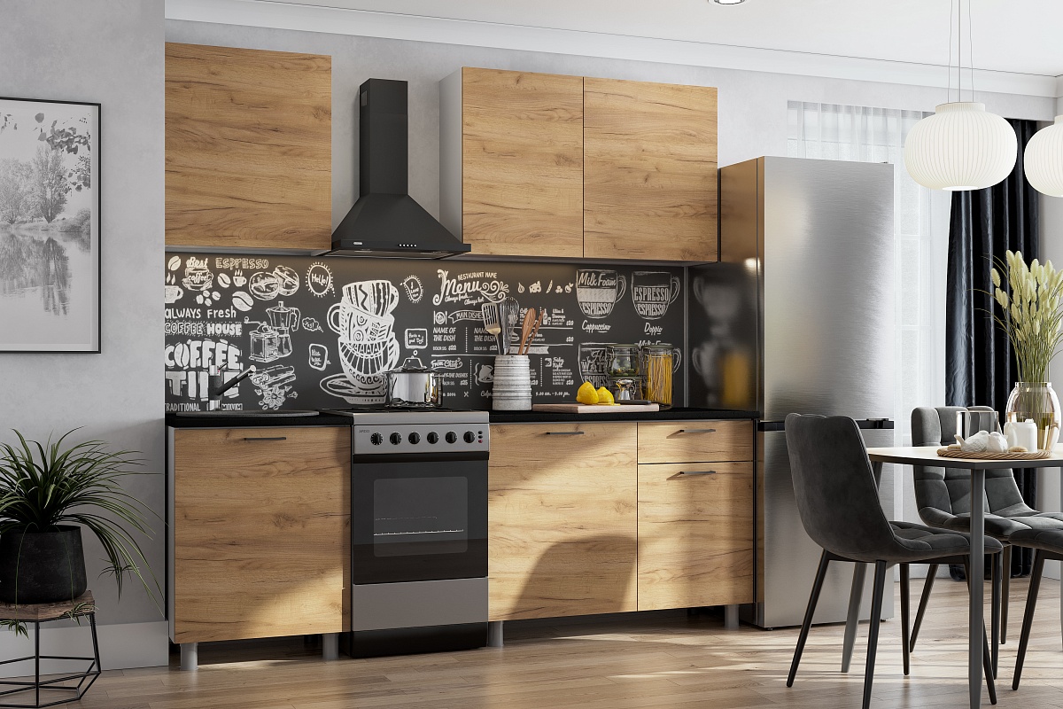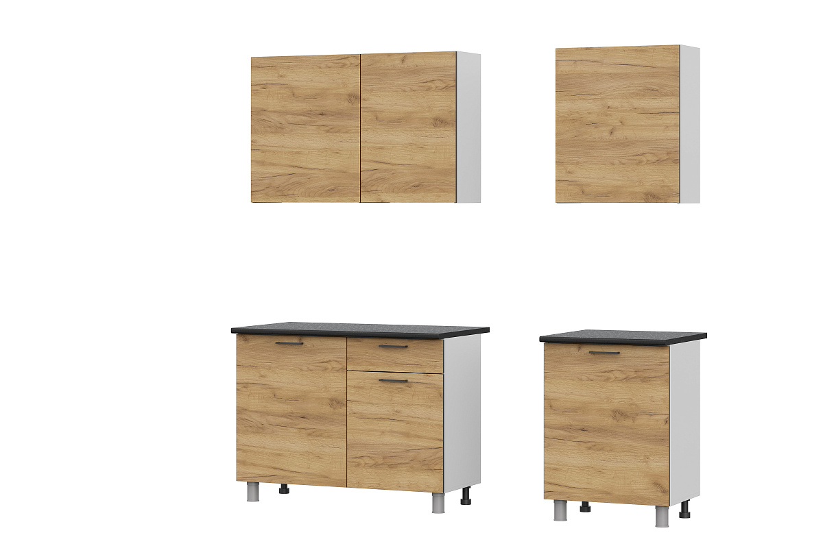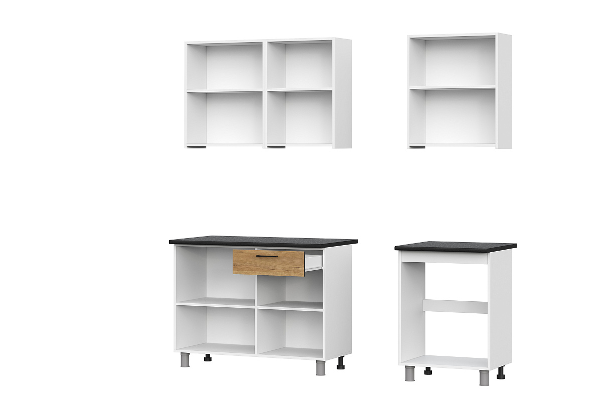 Гарнитур включает в себя 2 столешницы 26 мм «Чёрный матовый» размером 600х26х600 мм и 1100х26х600 мм.