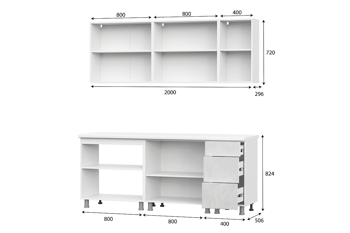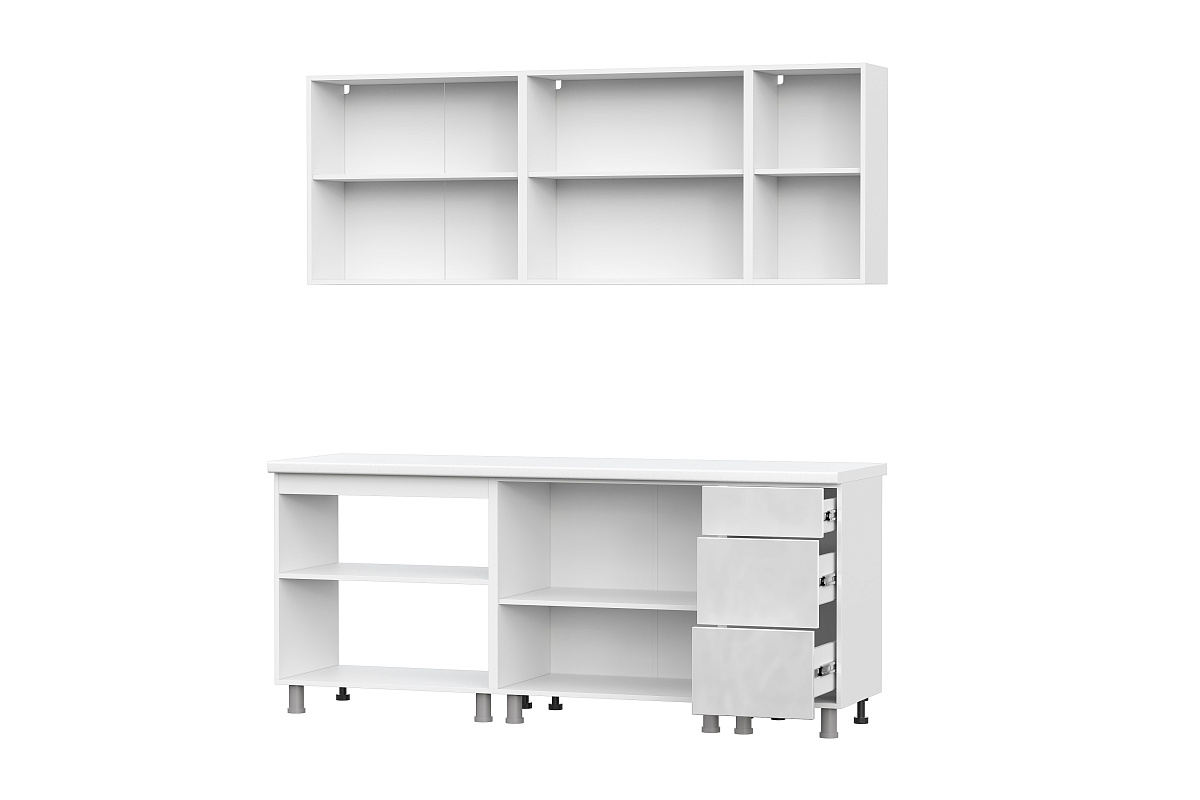 Столешница, стеновая панель, а также дополнительное оборудование (мойка, смеситель, бытовая техника) приобретаются отдельно.