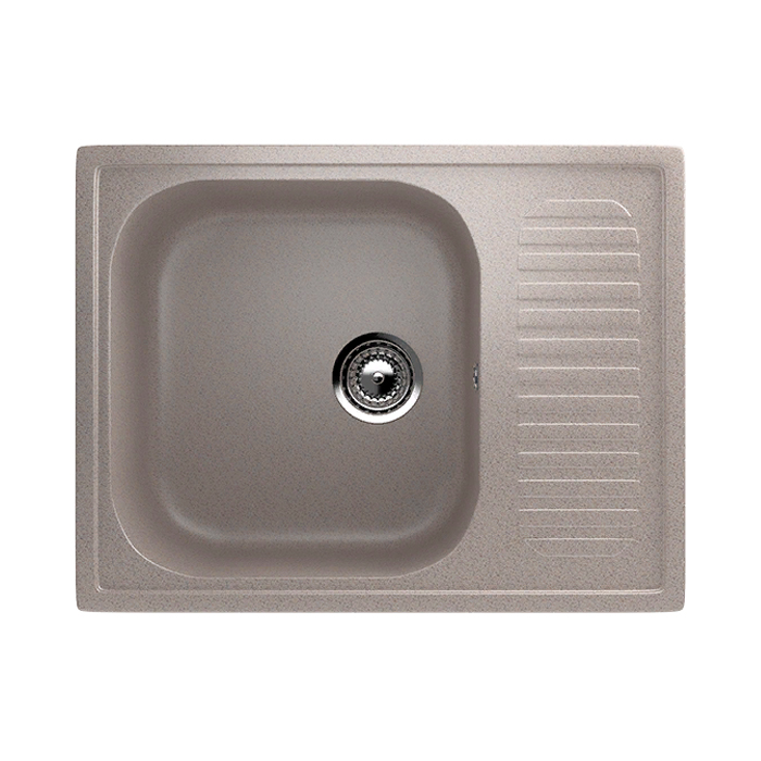 Односекционная реверсивная мойка с небольшим крылом. Чаша может располагаться справа или слева, в зависимости от планировки. Готового отверстия под смеситель нет. Оно просверливается непосредственно перед установкой.