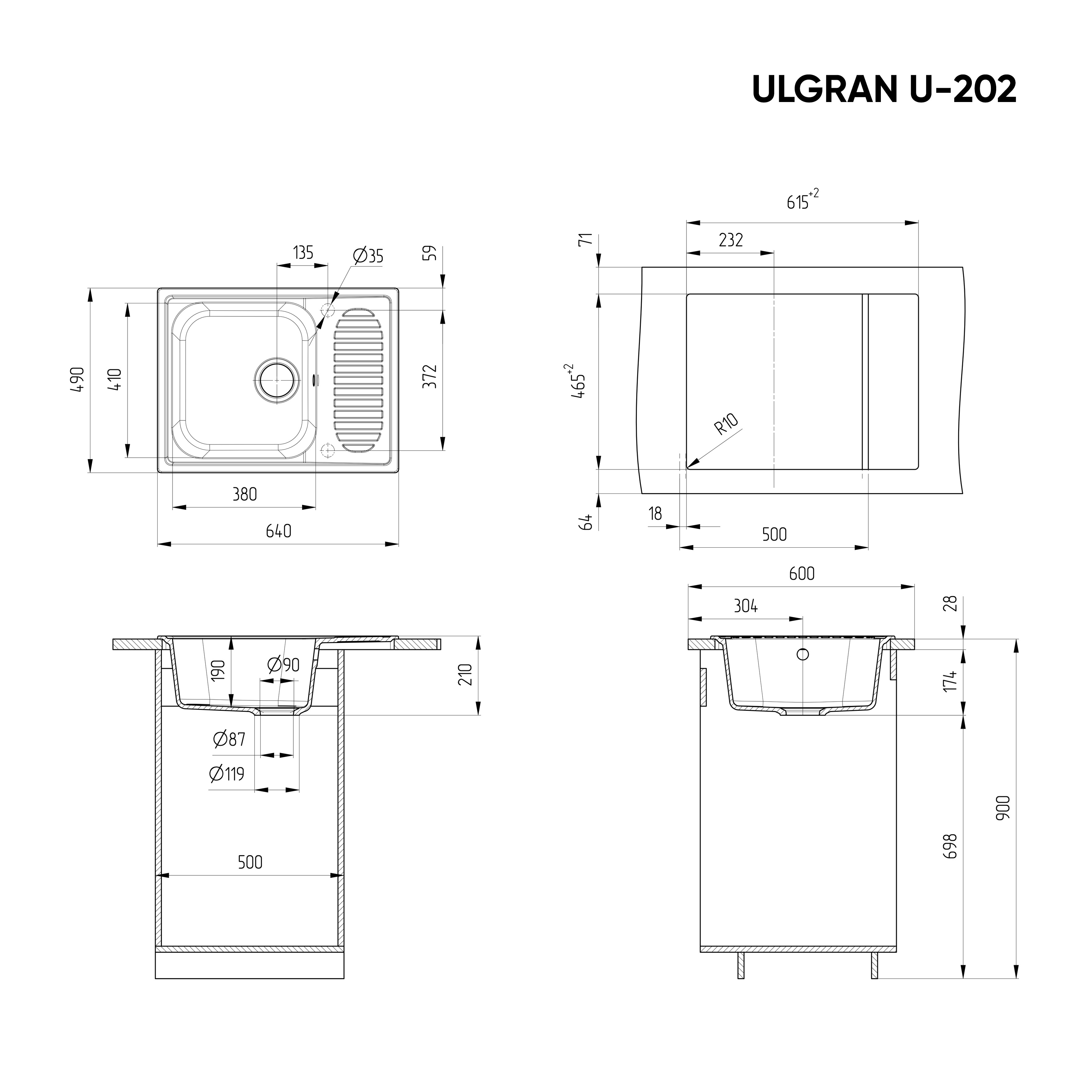 Мойка для кухни из искусственного мрамора ULGRAN U-202
