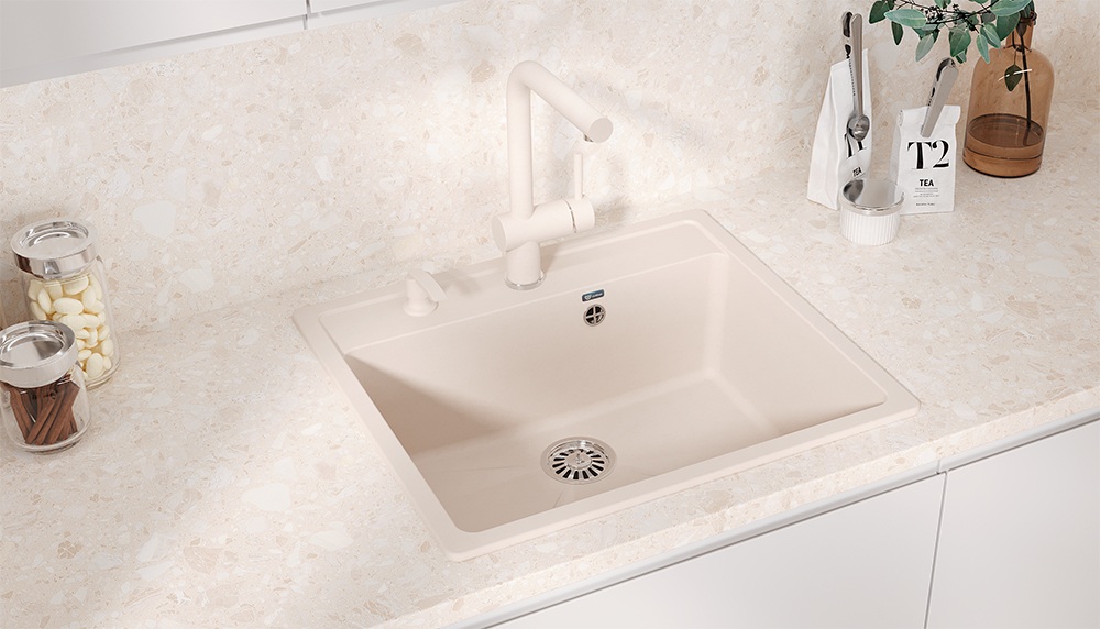 Мойки и смесители окрашены в фирменные цвета ULGRAN, что позволяет подобрать смеситель и мойку в одном цвете.
