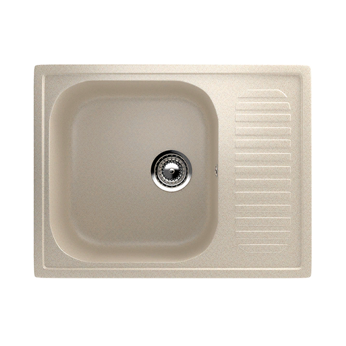 Односекционная реверсивная мойка с небольшим крылом. Чаша может располагаться справа или слева, в зависимости от планировки. Готового отверстия под смеситель нет. Оно просверливается непосредственно перед установкой.