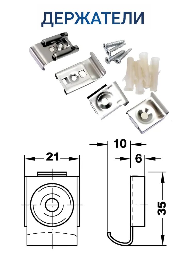 Стекло с полированной кромкой, 4 отверстия под крепеж, комплект крепежа