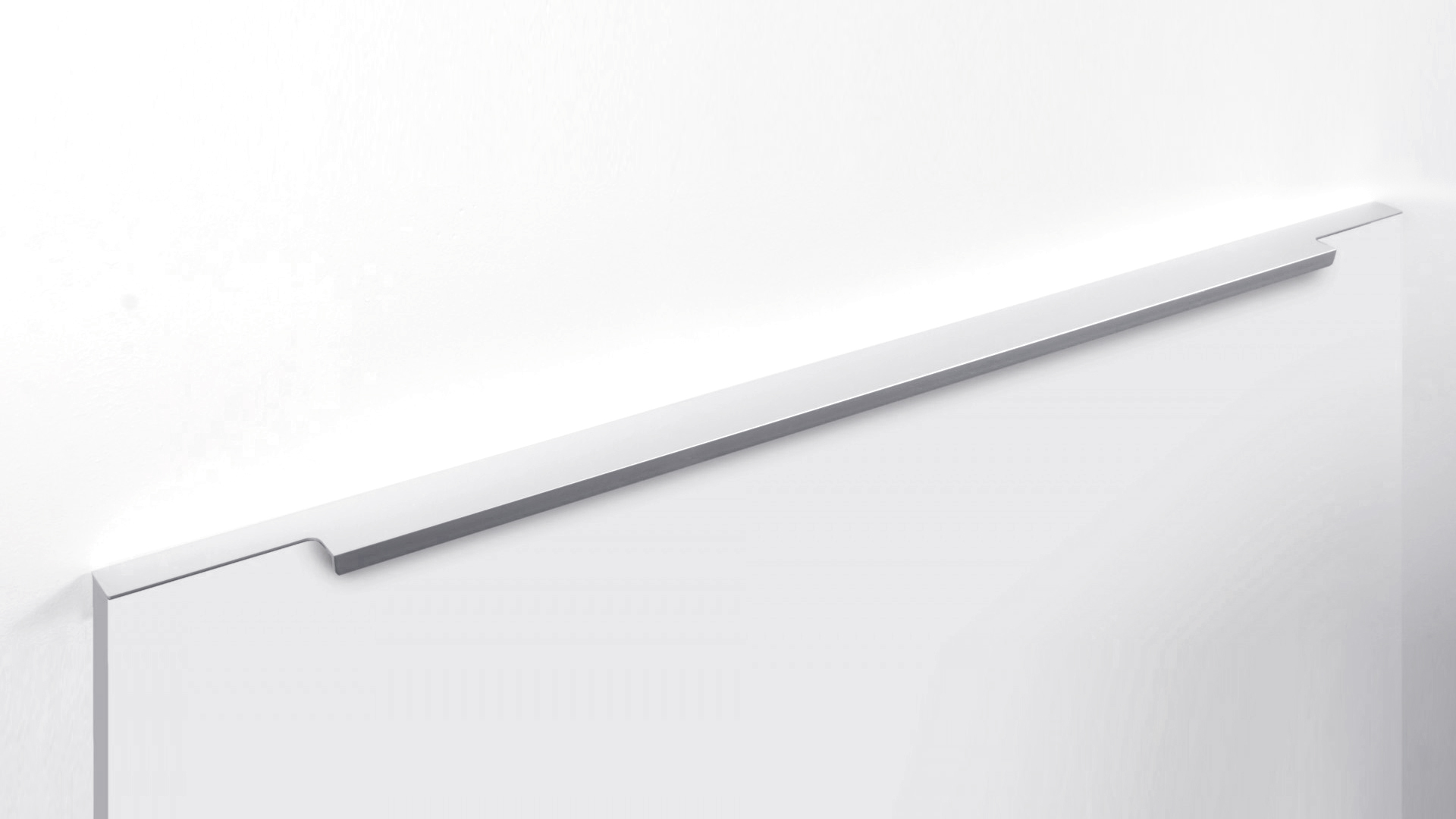 Ручка имеет богатую палитру цветовых решений и разнообразие длин. В зависимости от длины, модель допускает размещение двумя способами — «в размер» фасада и по центру широких фасадов (как большой «язычок»).