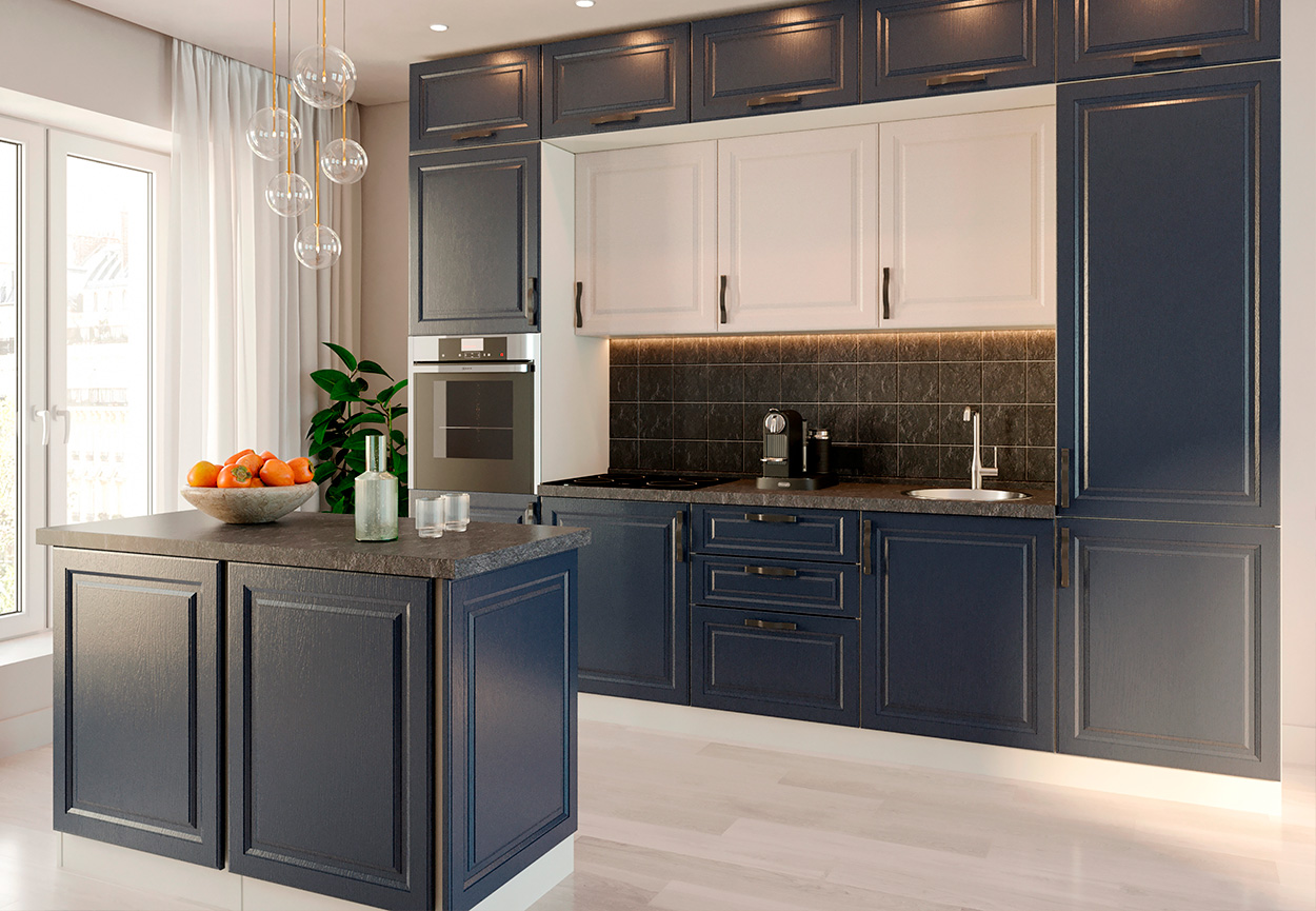 Гибкость планировки: Широкий выбор модулей позволяет создать уникальный и гармоничный дизайн кухни, идеально подходящий для помещений любого размера, от компактных до просторных.