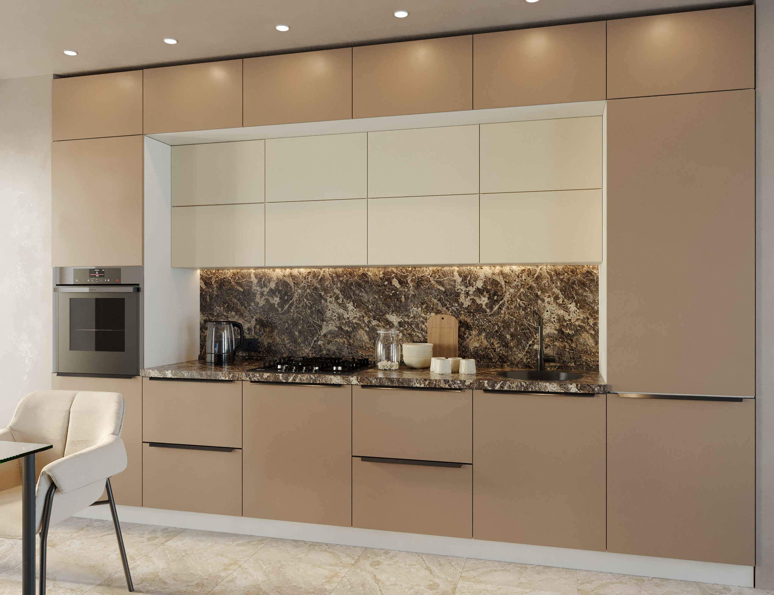 - Матовая поверхность: Обратная сторона фасада выполнена в матовом цвете, соответствующем лицевой стороне, создавая элегантный суперматовый эффект с приятной текстурой «софт тач». Гигиеничность и экологичность: Материалы, используемые в производстве, безопасны для здоровья и просты в уходе, что делает вашу кухню не только красивой, но и практичной.