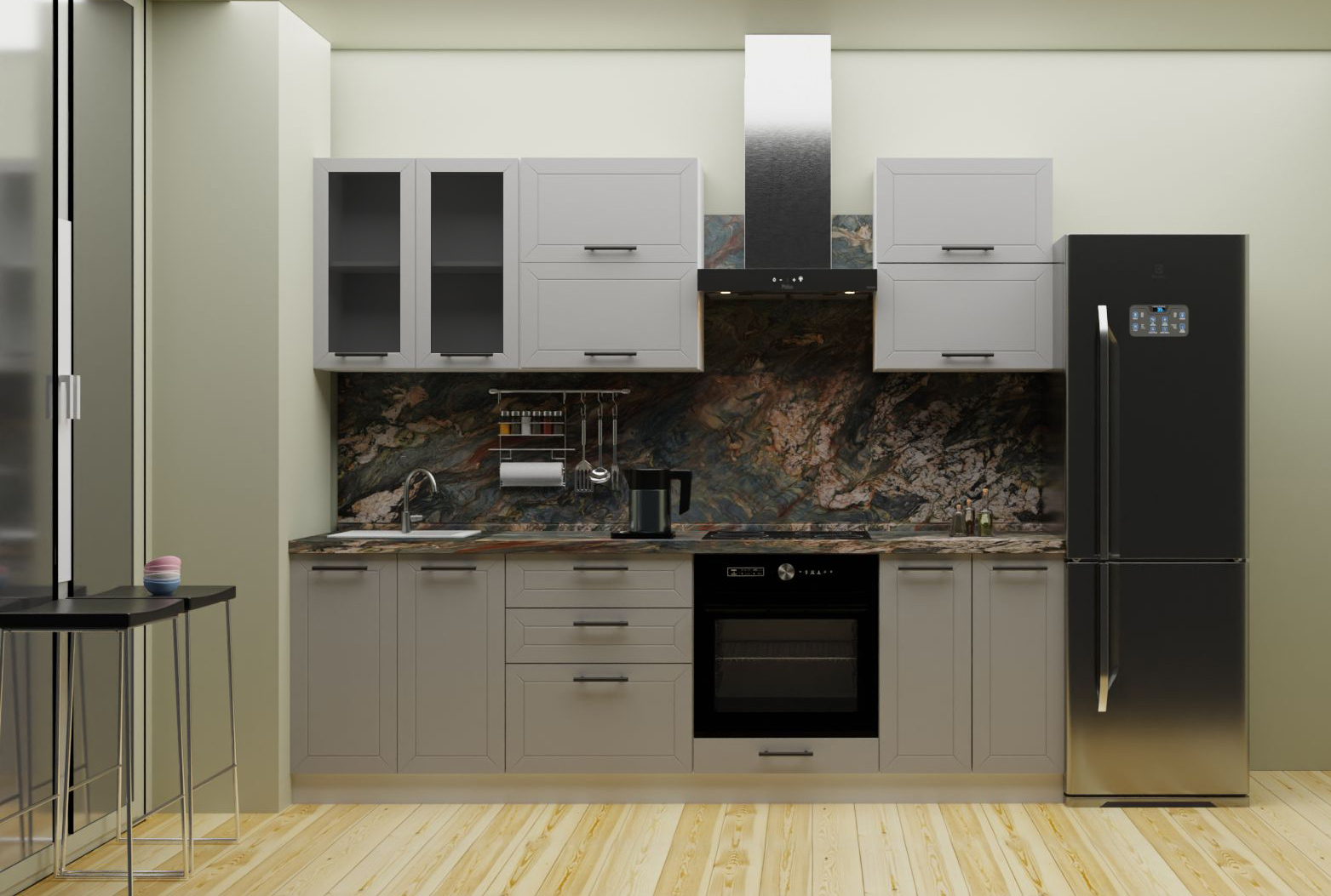Кухонный гарнитур “Вектор” отличается стильными фасадами с эффектом soft touch, который придает