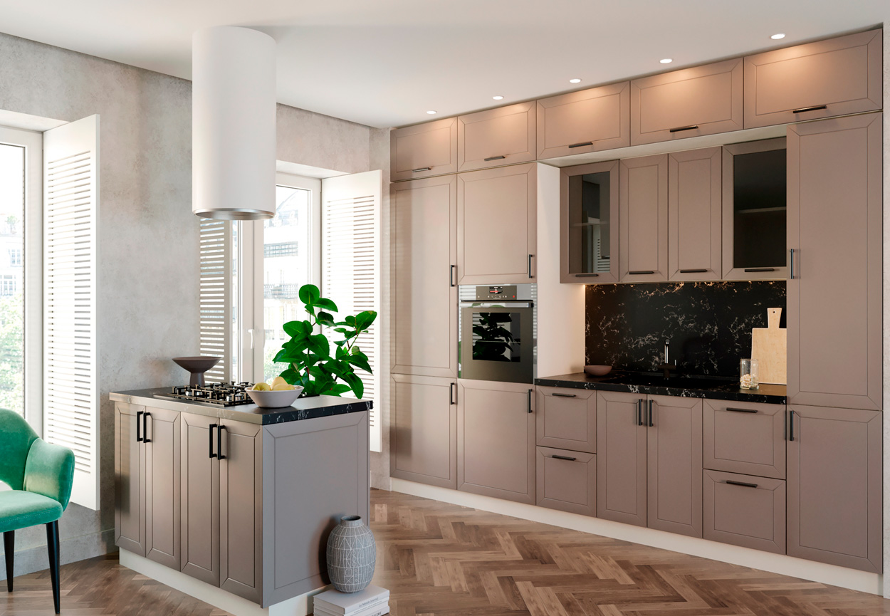 Особое внимание в «Векторе» уделено фасадам. Их поверхность выполнена с эффектом soft touch, что придает им приятную матовую текстуру и бархатистую мягкость на ощупь. Гладкие, приглушенные оттенки создают эффект окрашенных поверхностей, практически лишенных бликов. Это не только эстетично, но и невероятно практично: на таких фасадах практически незаметны отпечатки пальцев, а любые загрязнения легко удаляются влажной салфеткой или губкой, без необходимости использования абразивных средств.