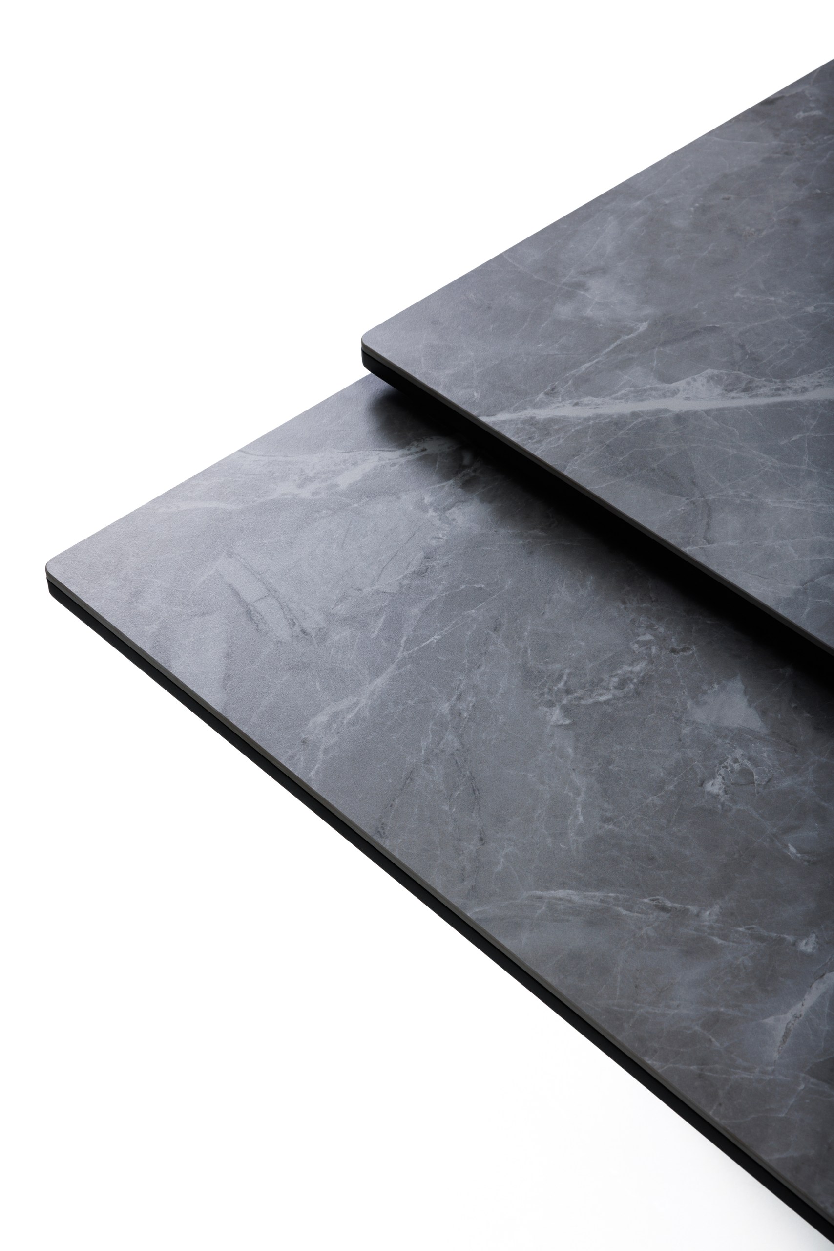 Сердце этого стола – его столешница, выполненная из двух высококачественных материалов, гармонично дополняющих друг друга:Керамогранит толщиной 6 мм: Этот материал известен своей исключительной прочностью. Он не впитывает запахи и легко моется, сохраняя свой первозданный вид на долгие годы. Керамогранит придает столешнице элегантный и современный вид, а его тонкость подчеркивает изящество конструкции.