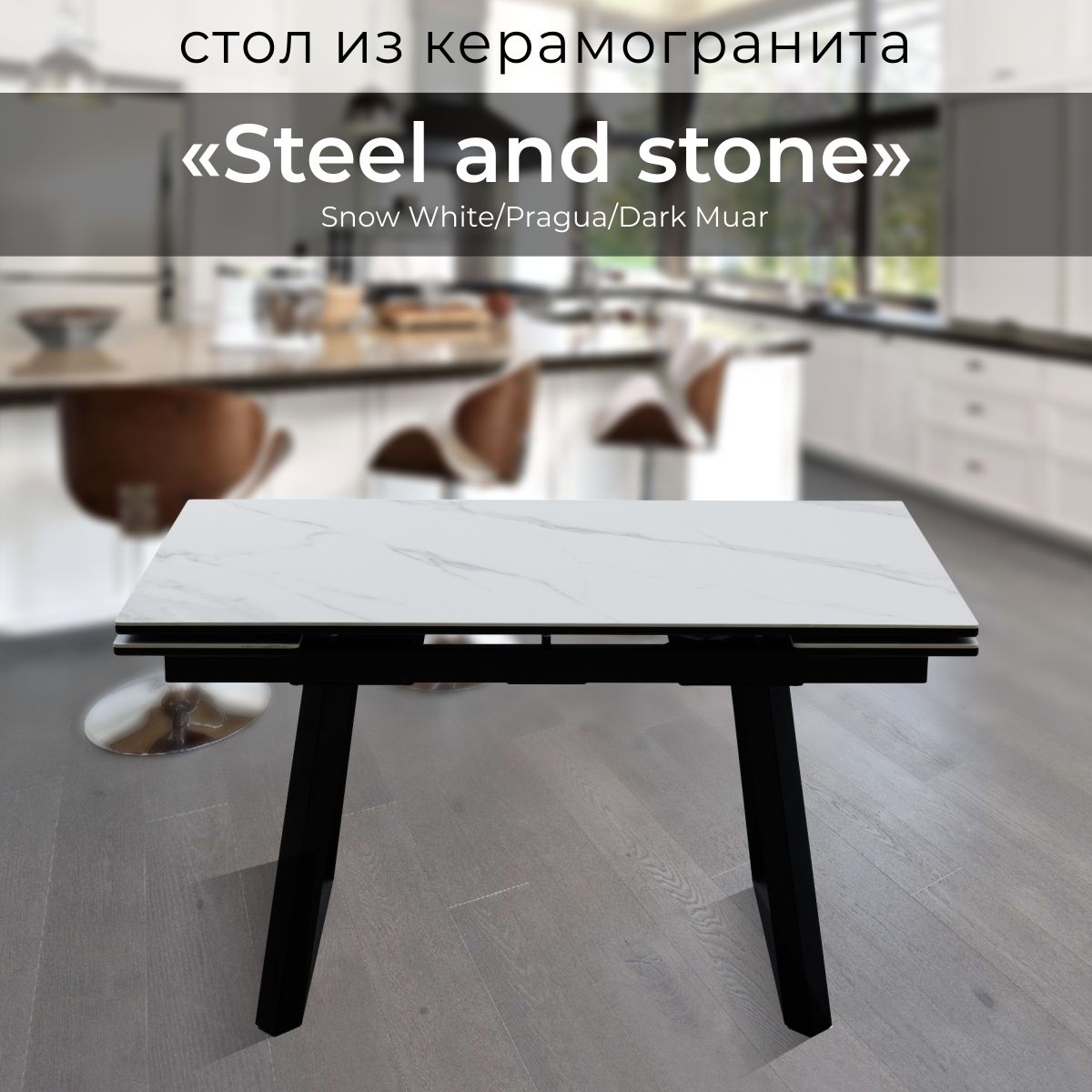 Стол раздвижной "Steel and stone" 1200 (Snow White/Pragua/Dark Muar)