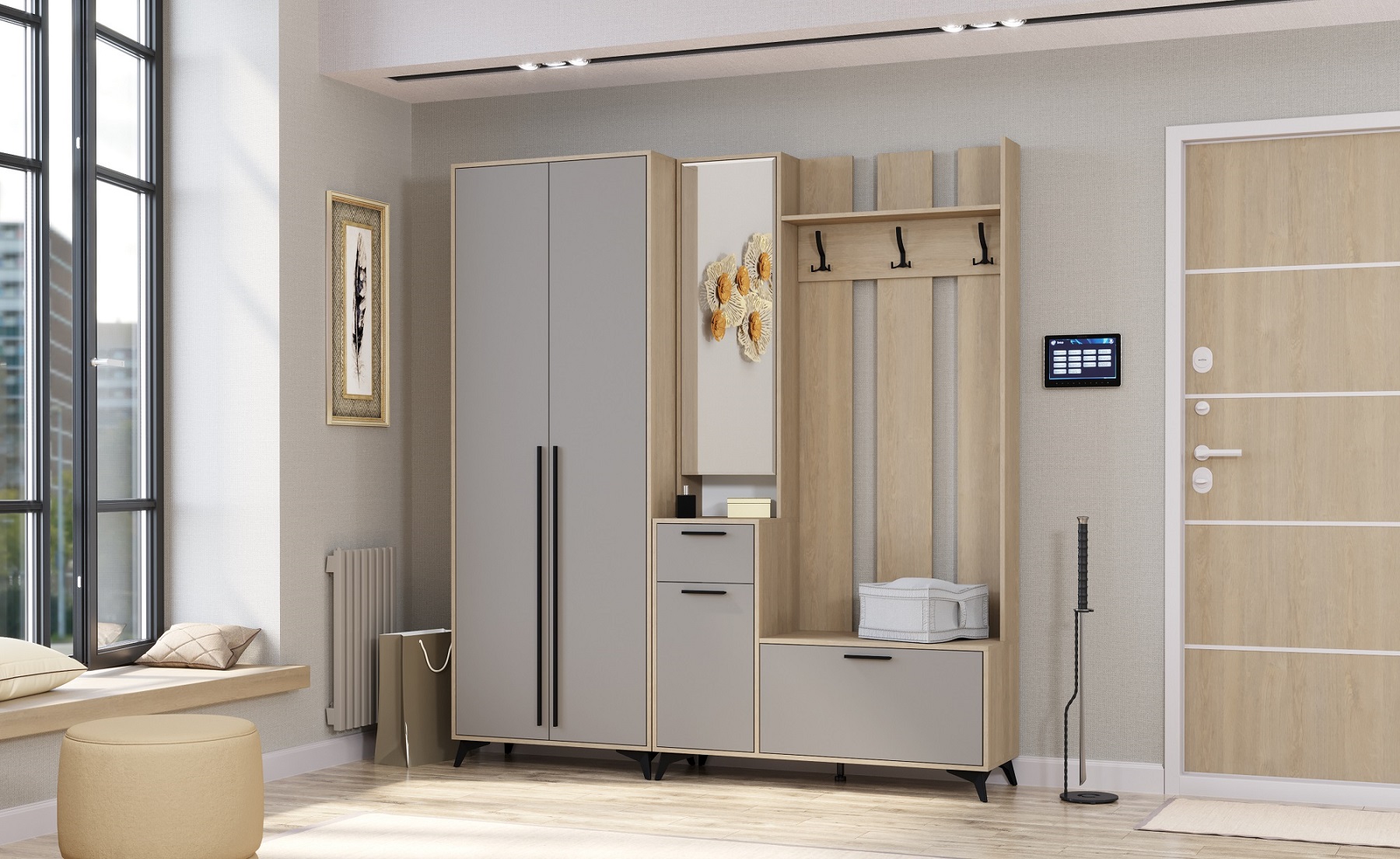 Модульная прихожая «ЕВА» предлагает только лучшие решения, применяемые в качественной современной корпусной мебели. «ЕВА» - коллекция с максимально расширенной свободой выбора из 6 расцветок фасадов. В коллекцию вошли модульная гостиная, прихожая и спальня. Наличие множества элементов, созданных для применения в быту, удобных для размещения предметов интерьера, одежды и вещей, делают коллекцию мебели «ЕВА» универсальной и желанной в любом доме. Основные преимущества и особенности коллекции: