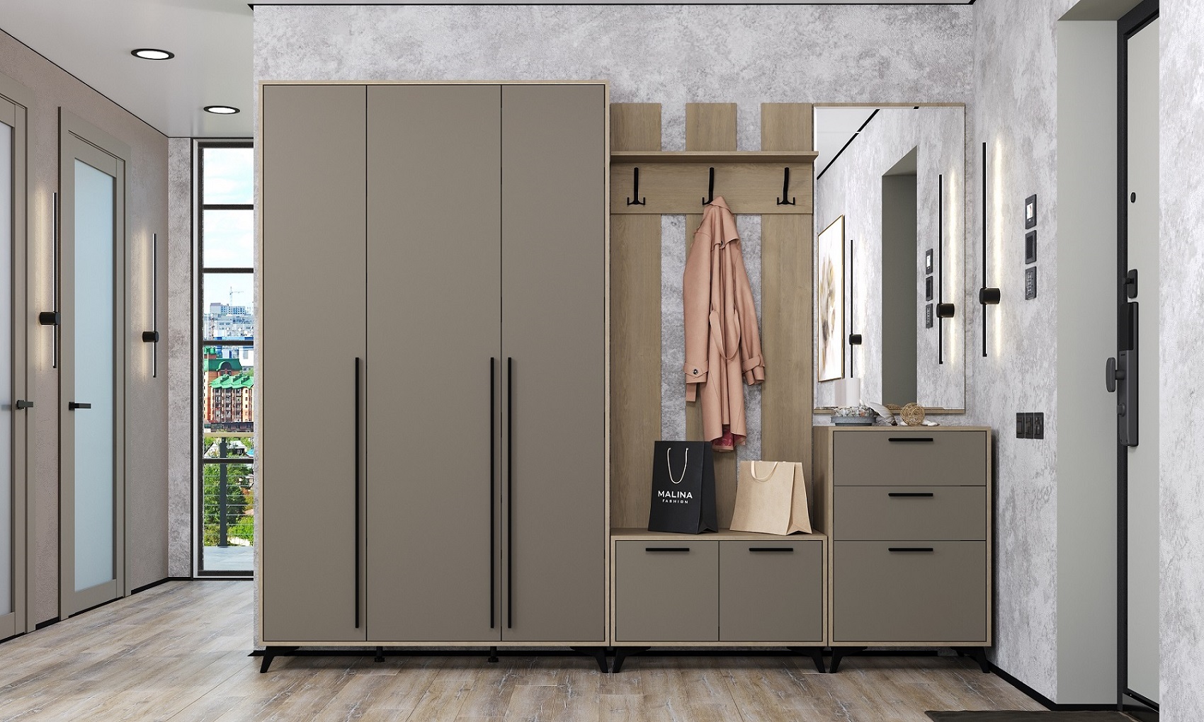 Модульная прихожая «ЕВА» предлагает только лучшие решения, применяемые в качественной современной корпусной мебели. «ЕВА» - коллекция с максимально расширенной свободой выбора из 6 расцветок фасадов. В коллекцию вошли модульная гостиная, прихожая и спальня. Наличие множества элементов, созданных для применения в быту, удобных для размещения предметов интерьера, одежды и вещей, делают коллекцию мебели «ЕВА» универсальной и желанной в любом доме. Основные преимущества и особенности коллекции: