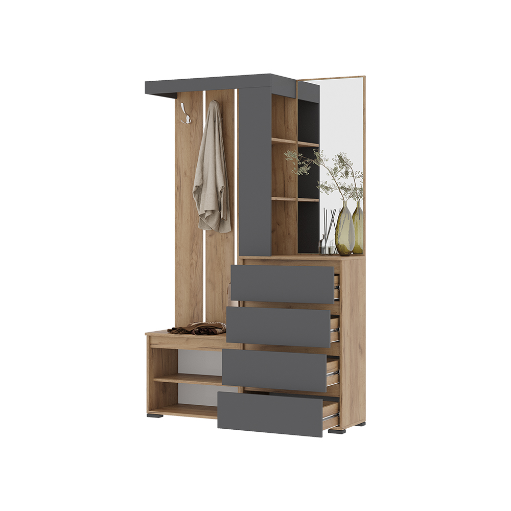 ХЕЛЕН ШК 05 Шкаф четырехстворчатый с ящиками БЕЛЫЙ/ДУБ КРАФТ ЗОЛОТО