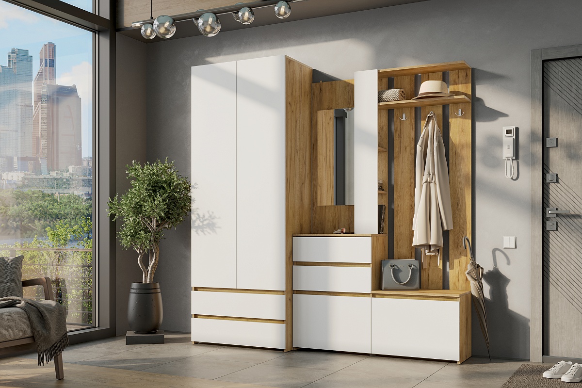 Вешалка с зеркалом МС "Некст 1" Дуб Золотой/Белый