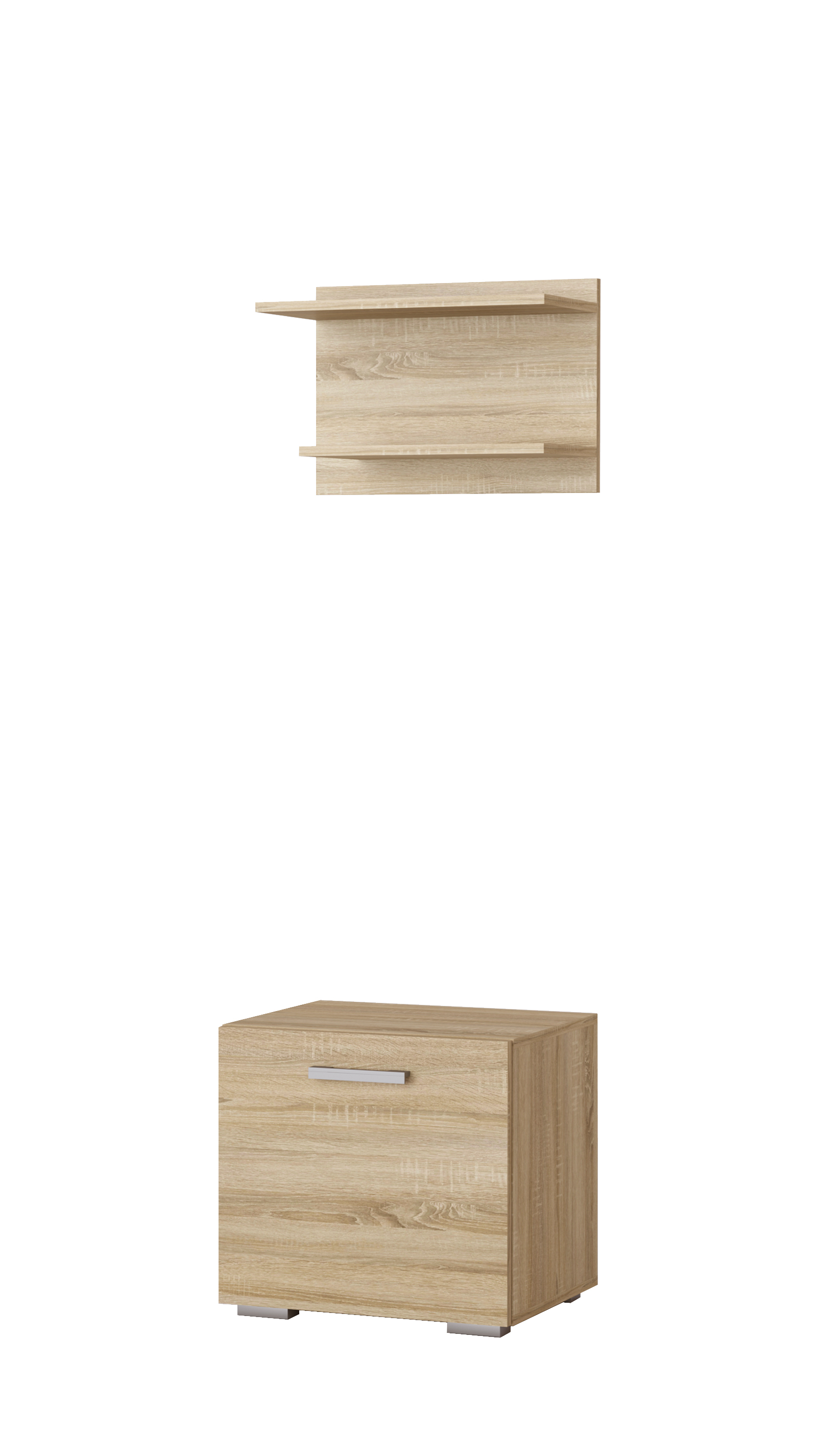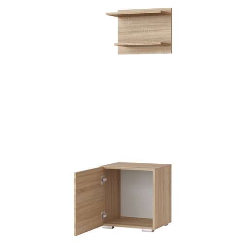Тумба 1-створчатая с навесной полкой. Полка крепится к стене через навесные элементы.
