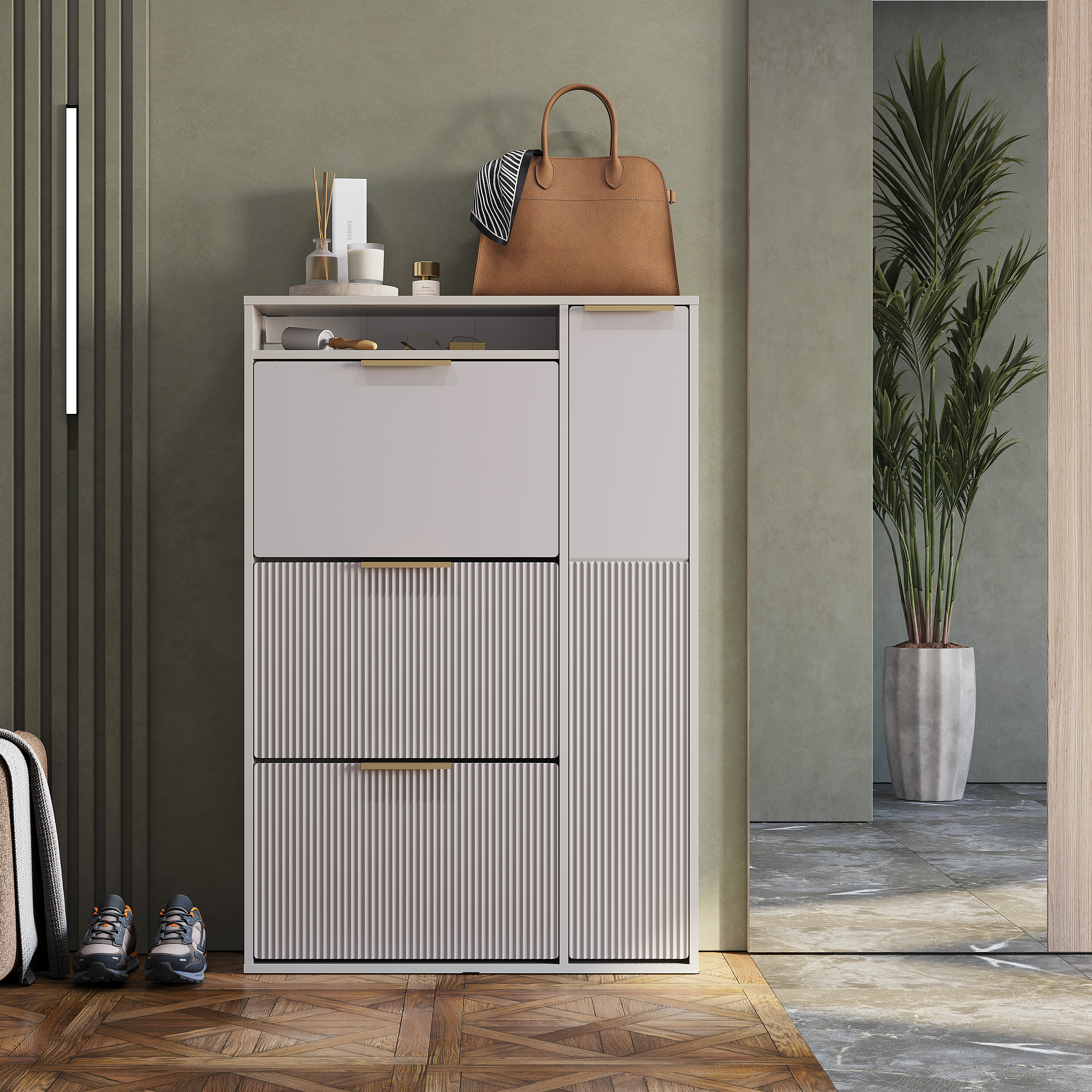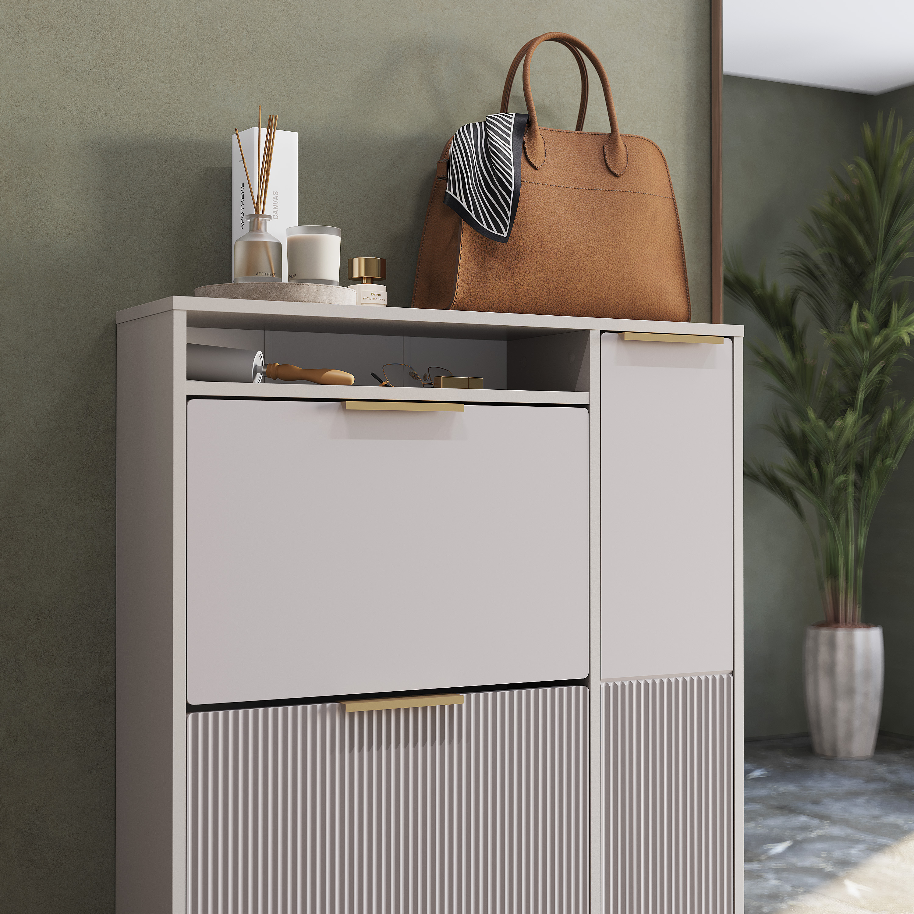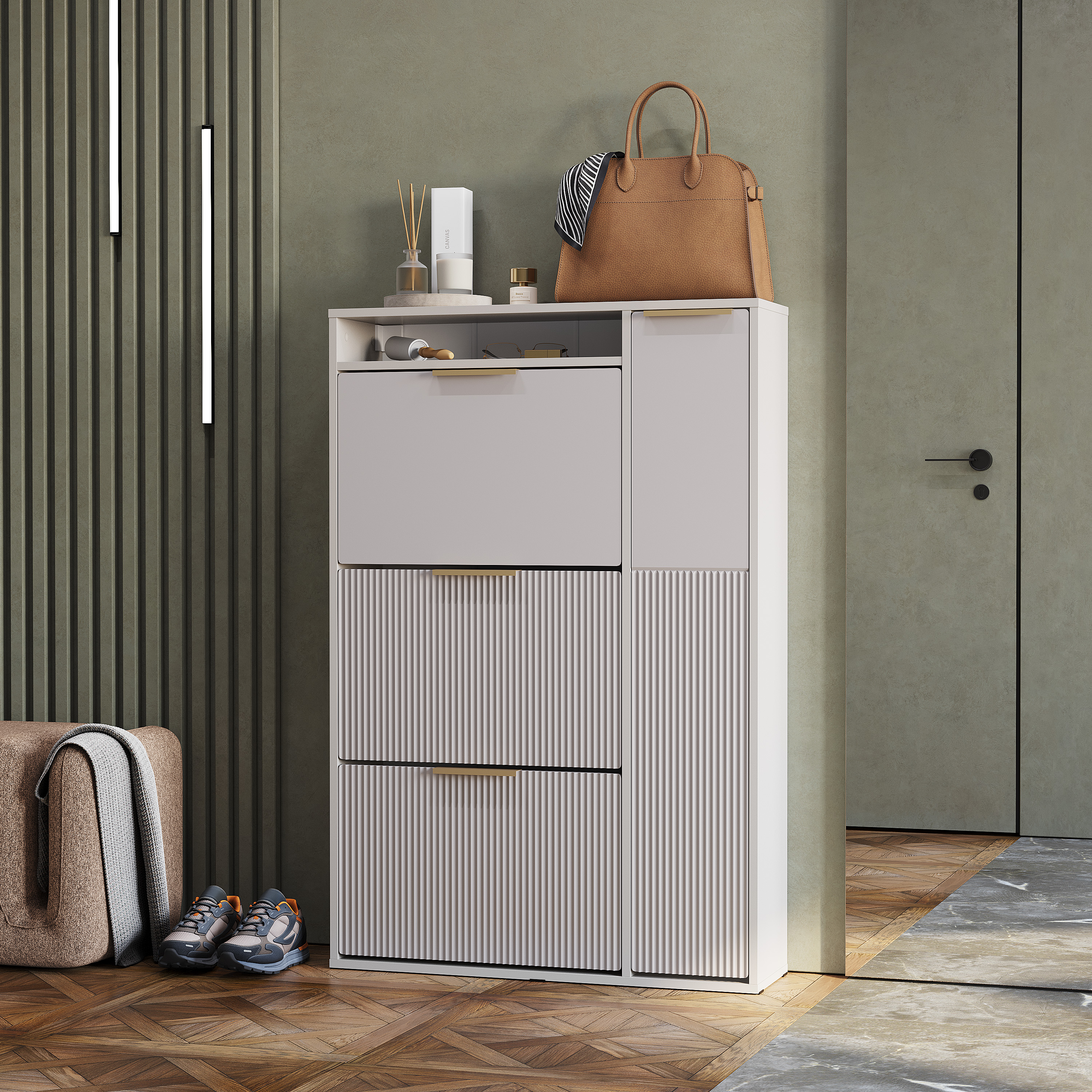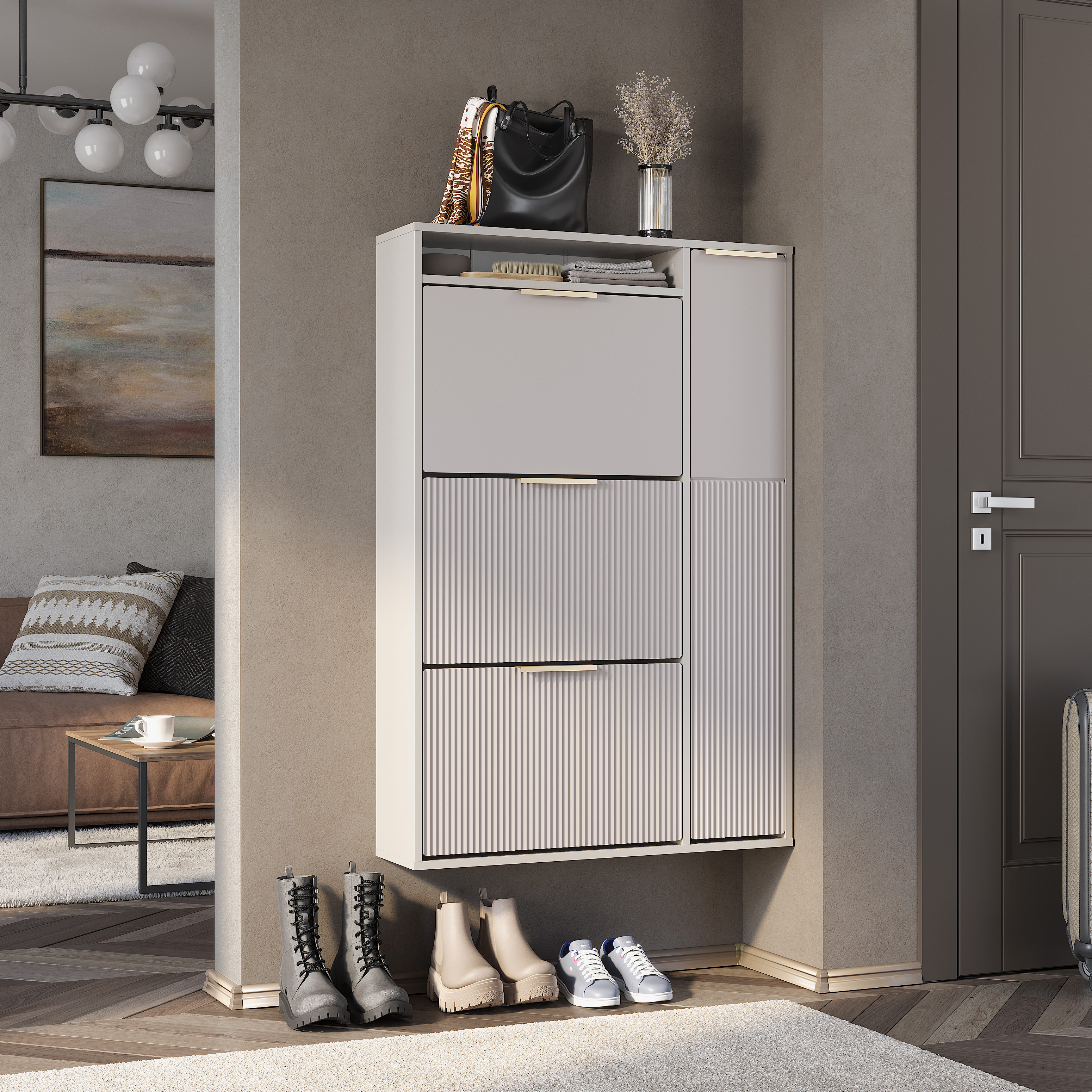 Удобная и стильная обувница «Пандора» может стать незаменимой частью вашей прихожей. Трендовые МДФ-фасады с декоративной вертикальной фрезеровкой – продолжение индивидуальности коллекции.