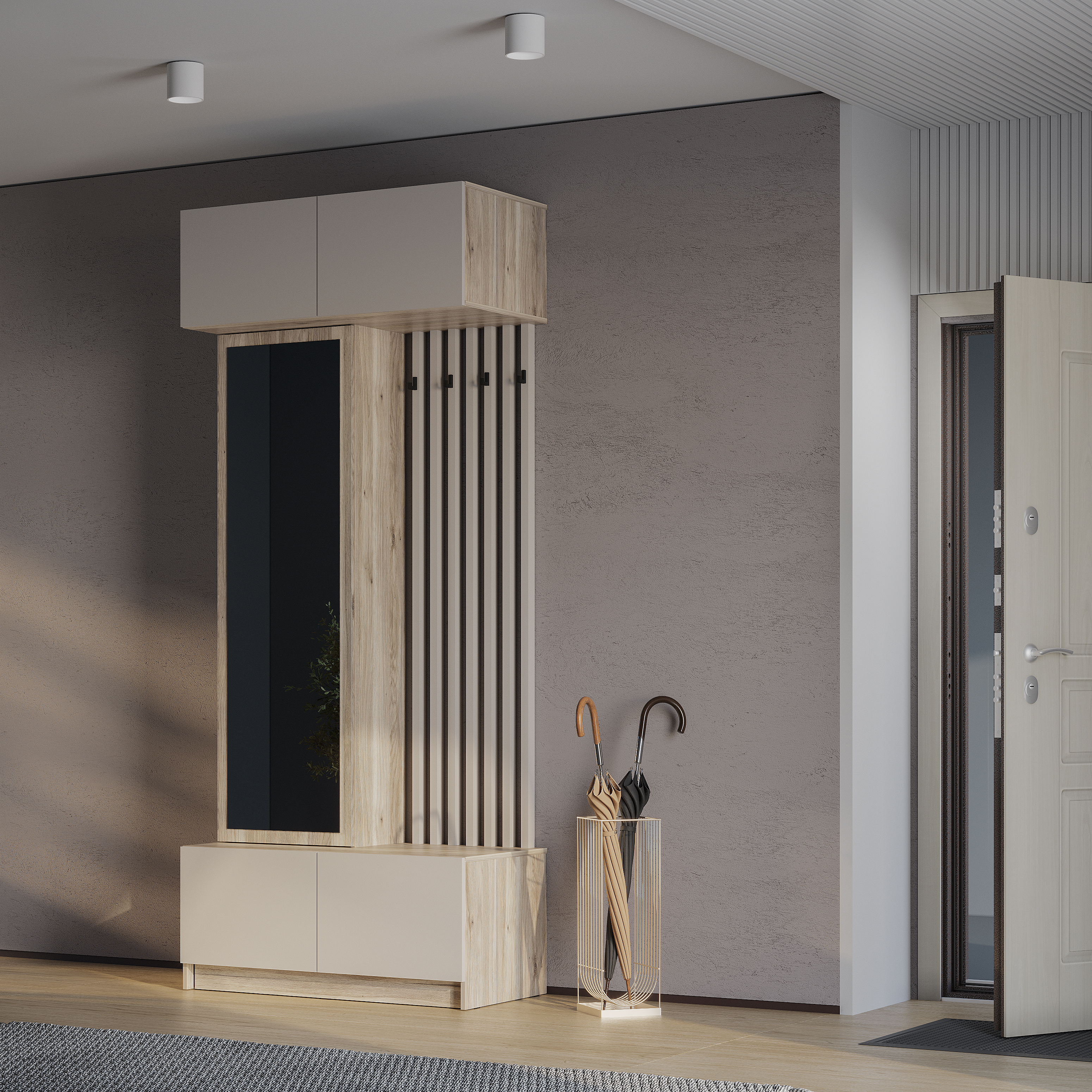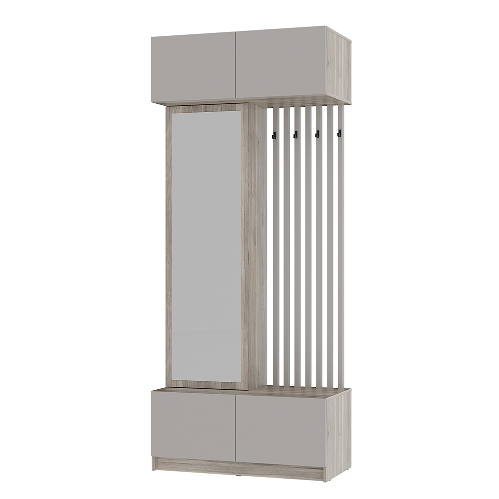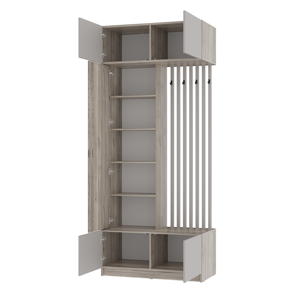 Стильная и компактная прихожая «Багира» – это оптимальное сочетание открытых и закрытых зон для хранения верхней одежды, головных уборов, обуви и аксессуаров.