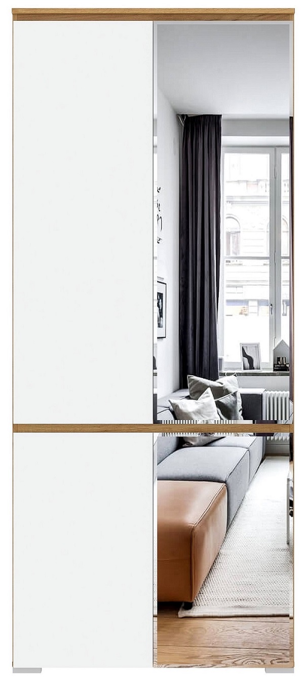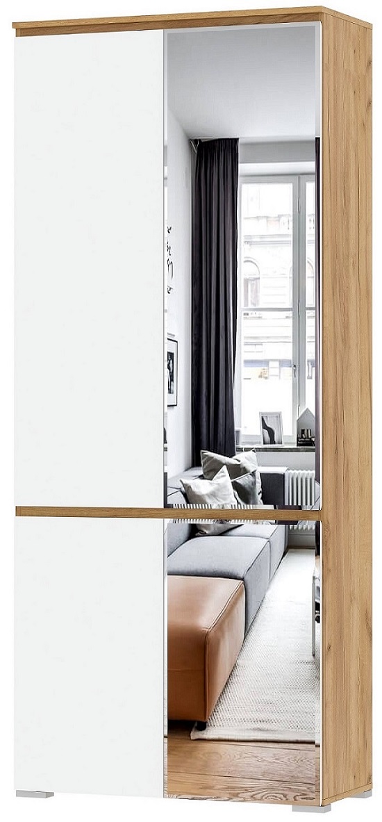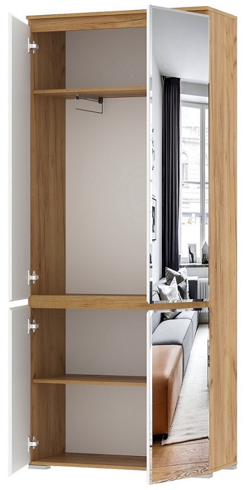 Шкаф 6С2Я с зеркалом "ГРЕТТА" Дуб Крафт золотой/Белый